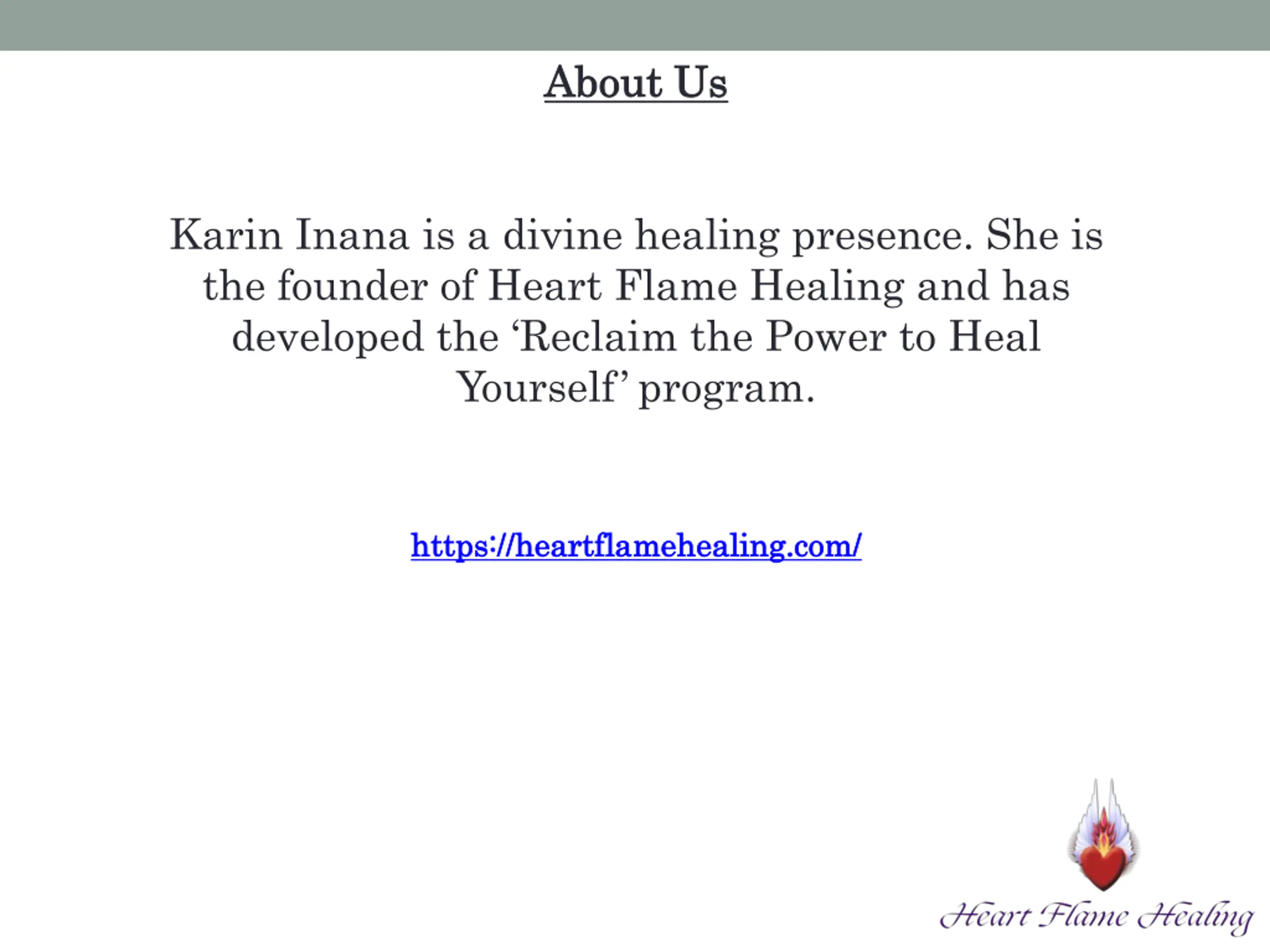 About Us About Us Karin Inana is a divine healing presence. She is the founder of Heart Flame Healing and has developed the Reclaim the Power to Heal Yourself program. https://heartflamehealing.com https://heartflamehealing.com/ /