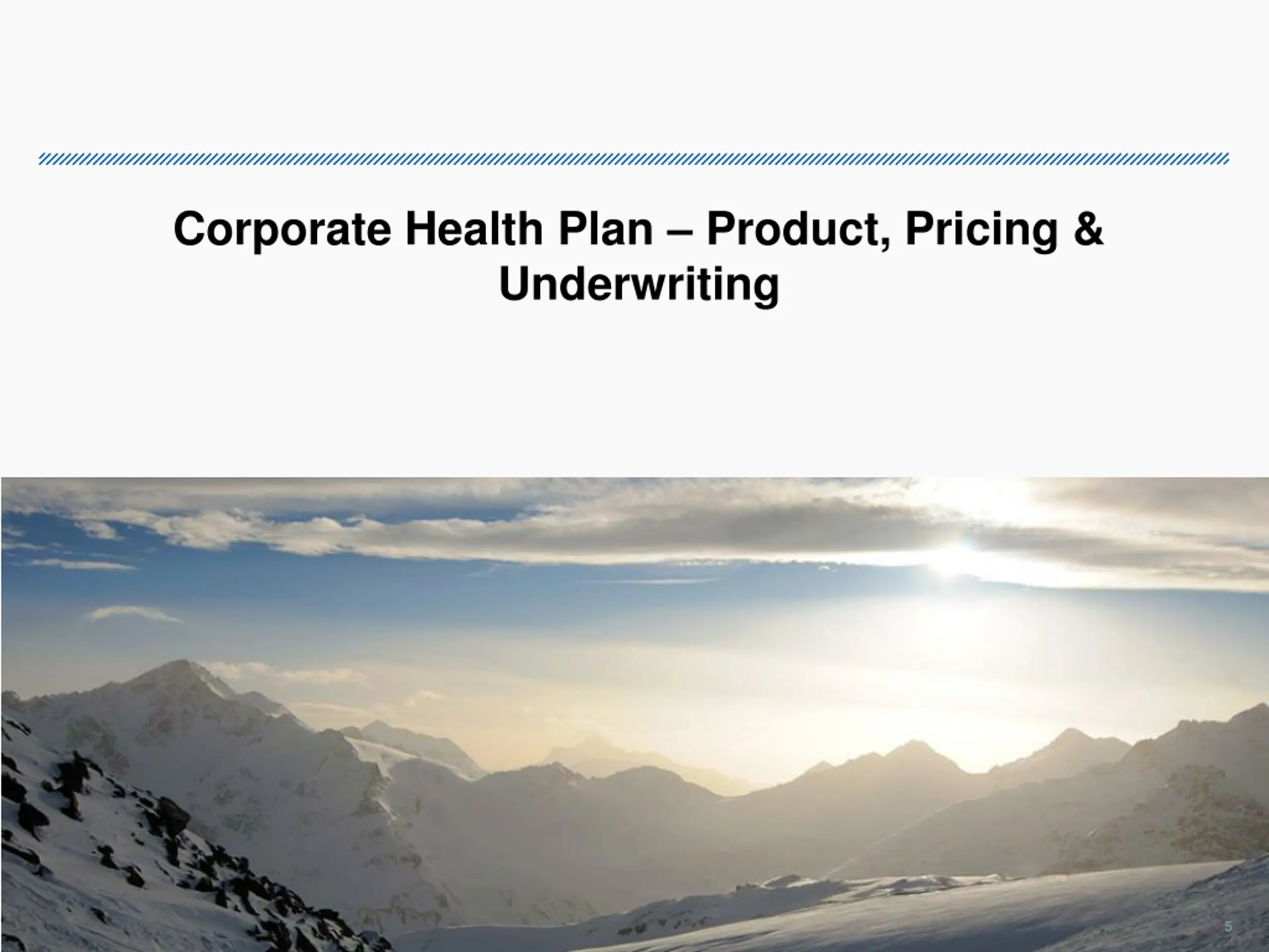Corporate Health Plan Product, Pricing & Underwriting 5
