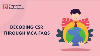 Definition of CSR, its importance, prime factors, need, and the argument for CSR in businesses are discussed in this presentation. CSR involves considering the impact of business activities on society and encompasses ethical, social, legal, and economic responsibilities. It is essential for reputation management, attracting employees, cost efficiency, and maintaining good investor relations. Implementing CSR can foster goodwill, contribute to economic development, and enhance the quality of life for various stakeholders.
