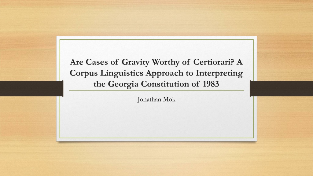 Analysis of Georgia Constitution of 1983 using corpus linguistics approach, exploring the interpretation of 'gravity' and 'great public importance' in legal contexts. Examines Georgia and United States Supreme Court precedents to understand the meaning of these terms.