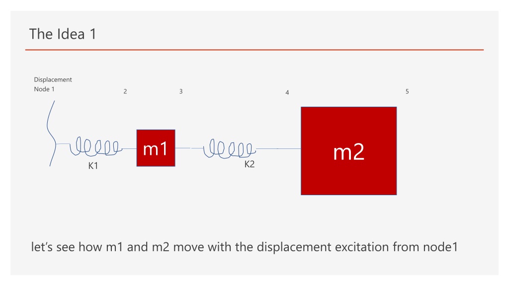 The Idea 1 Displacement Node 1 2 3 5 4 m2 m1 K2 K1 let s see how m1 and m2 move with the displacement excitation from node1