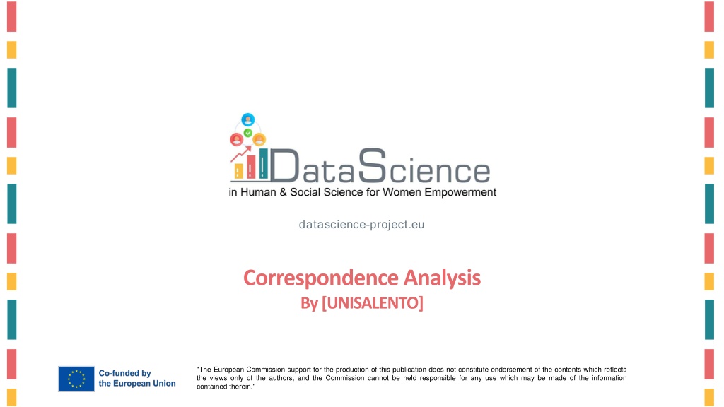 datascience-project.eu Correspondence Analysis By [UNISALENTO] The European Commission support for the production of this publication does not constitute endorsement of the contents which reflects the views only of the authors, and the Commission cannot be held responsible for any use which may be made of the information contained therein."