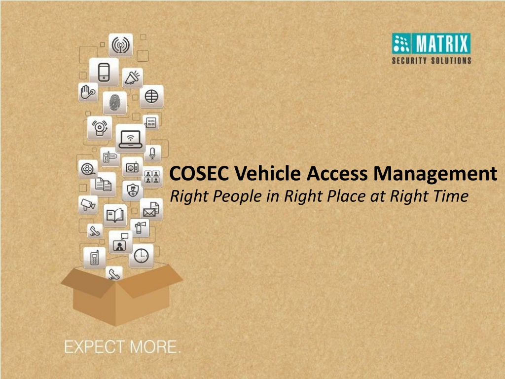 WHY VAM in Corporates? WHY VAM in Corporates? Matrix COSEC VAM Vehicle Authentication based on its Types Separate Authentication Mechanism for Employee/Personal, Material Management and Company Owned Vehicles