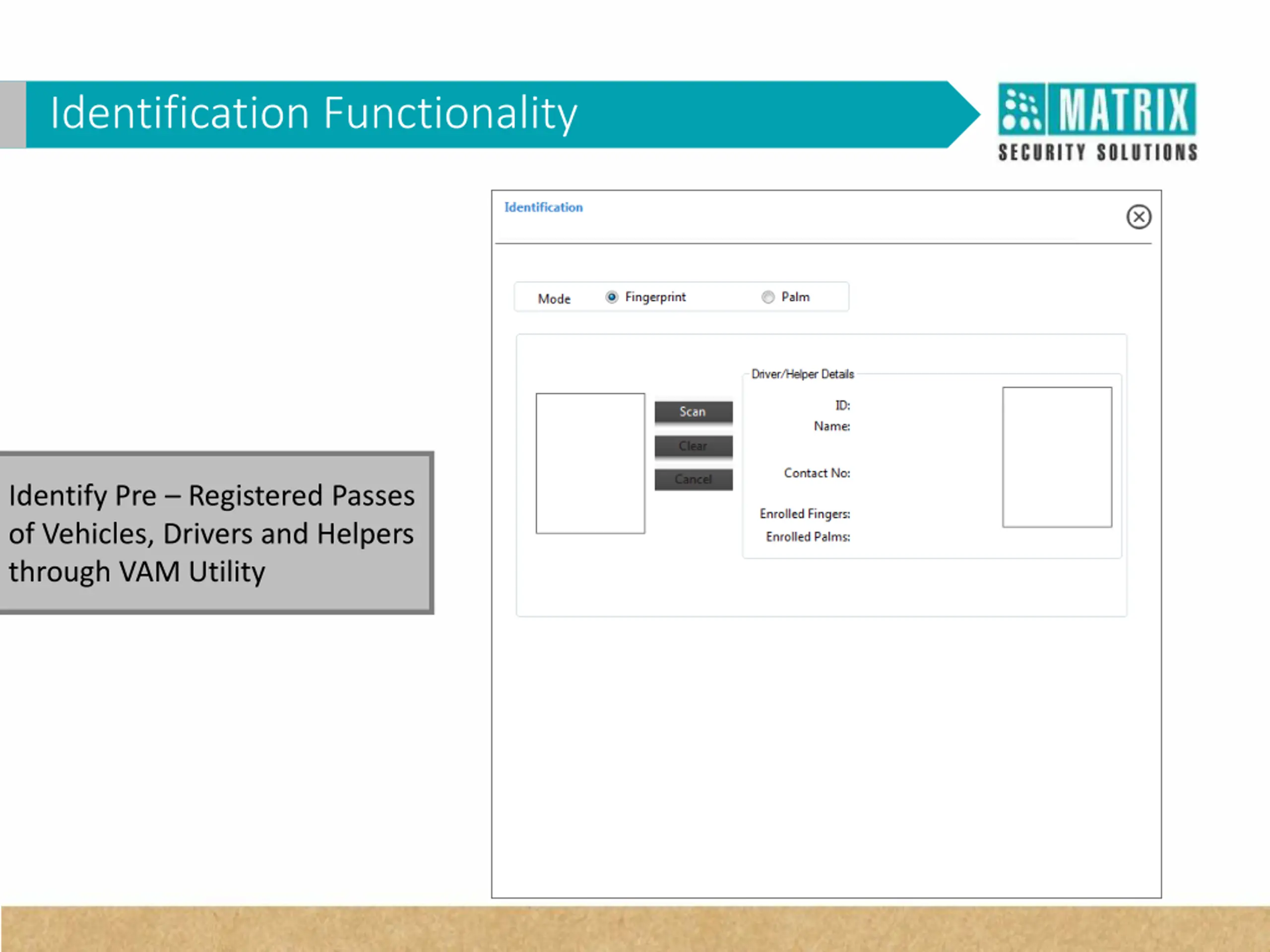 Vehicle Profile Vehicle Profile Identification Functionality Identify Pre Registered Passes of Vehicles, Drivers and Helpers through VAM Utility
