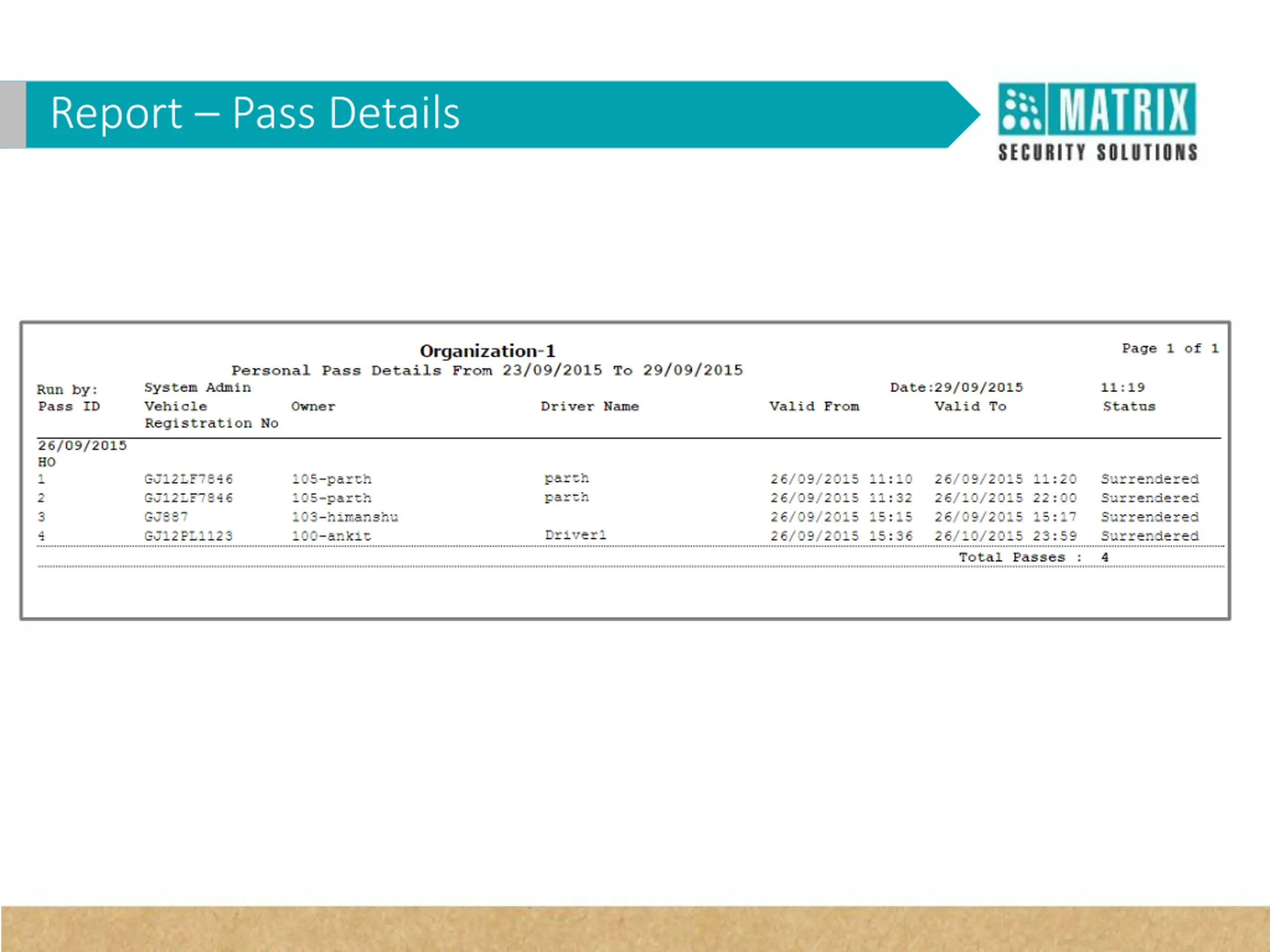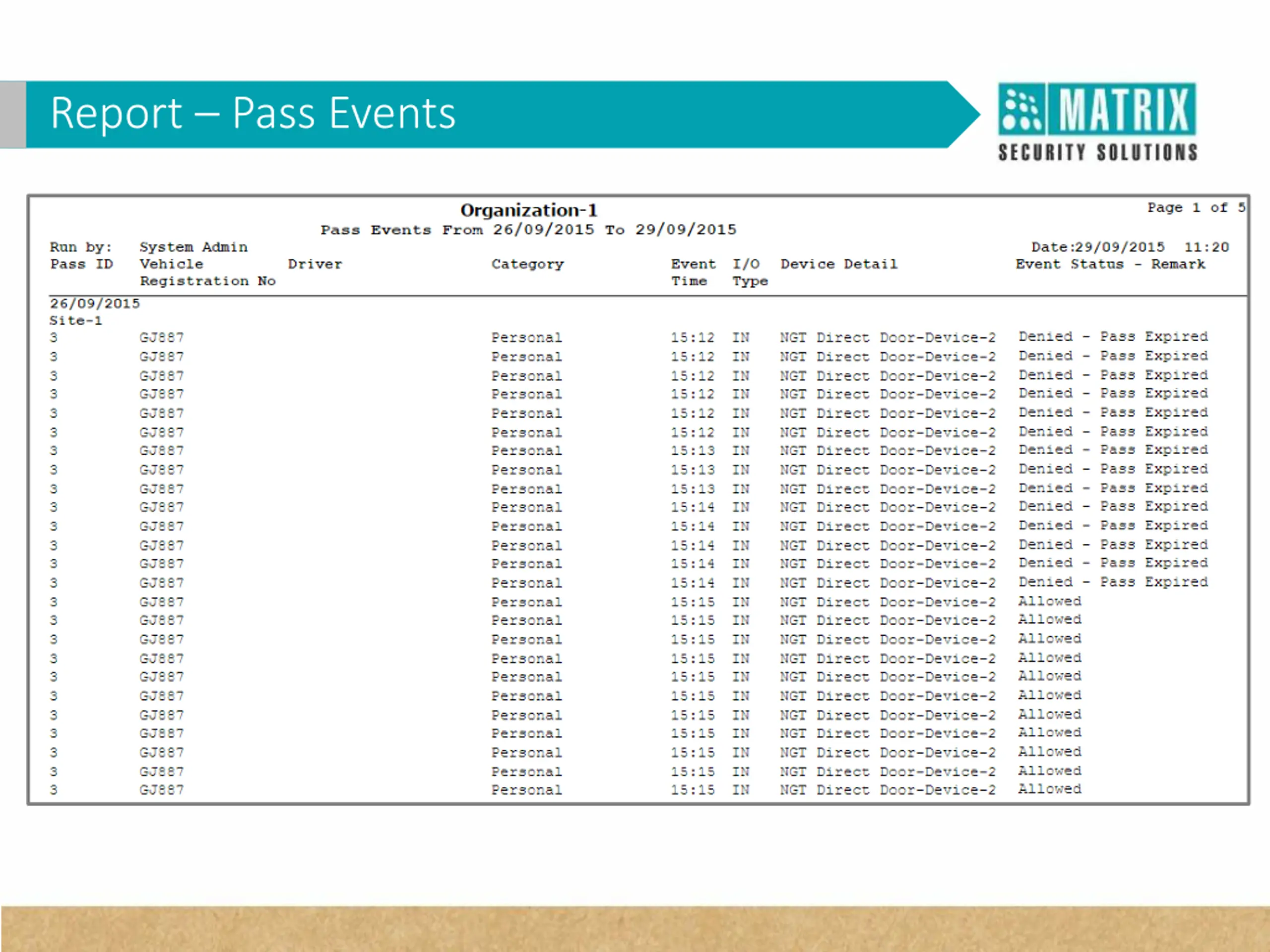 Vehicle Profile Vehicle Profile Reports Generate Reports - PDF MS-Excel MS-Excel Data Types Pass Count Pass Details XML Rich Text Format Pass Events Blacklisted Vehicles/Drivers MS-Word MS-Word Editable RTP