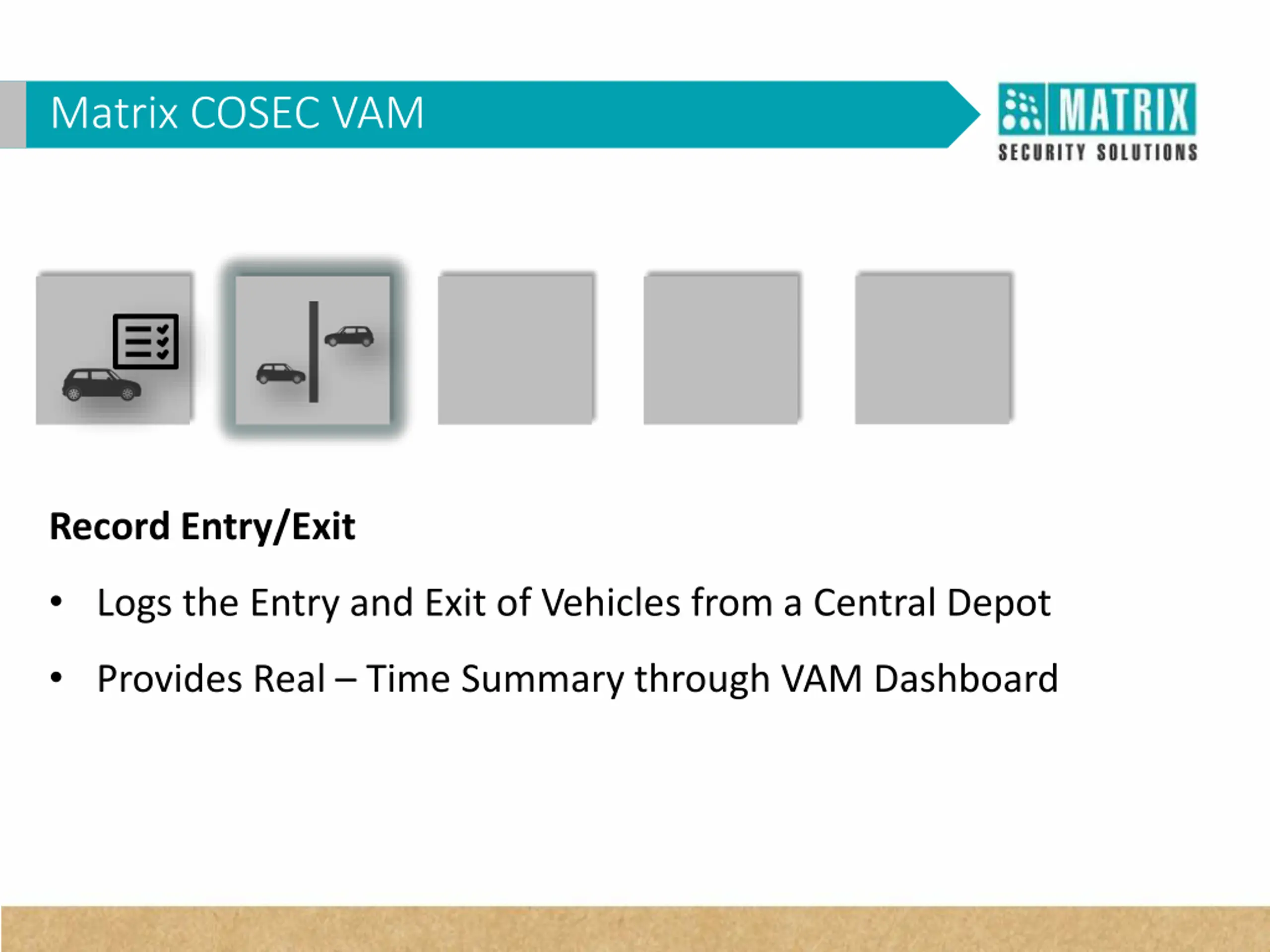 WHY VAM in Corporates? WHY VAM in Corporates? Matrix COSEC VAM Record Entry/Exit Logs the Entry and Exit of Vehicles from a Central Depot Provides Real Time Summary through VAM Dashboard