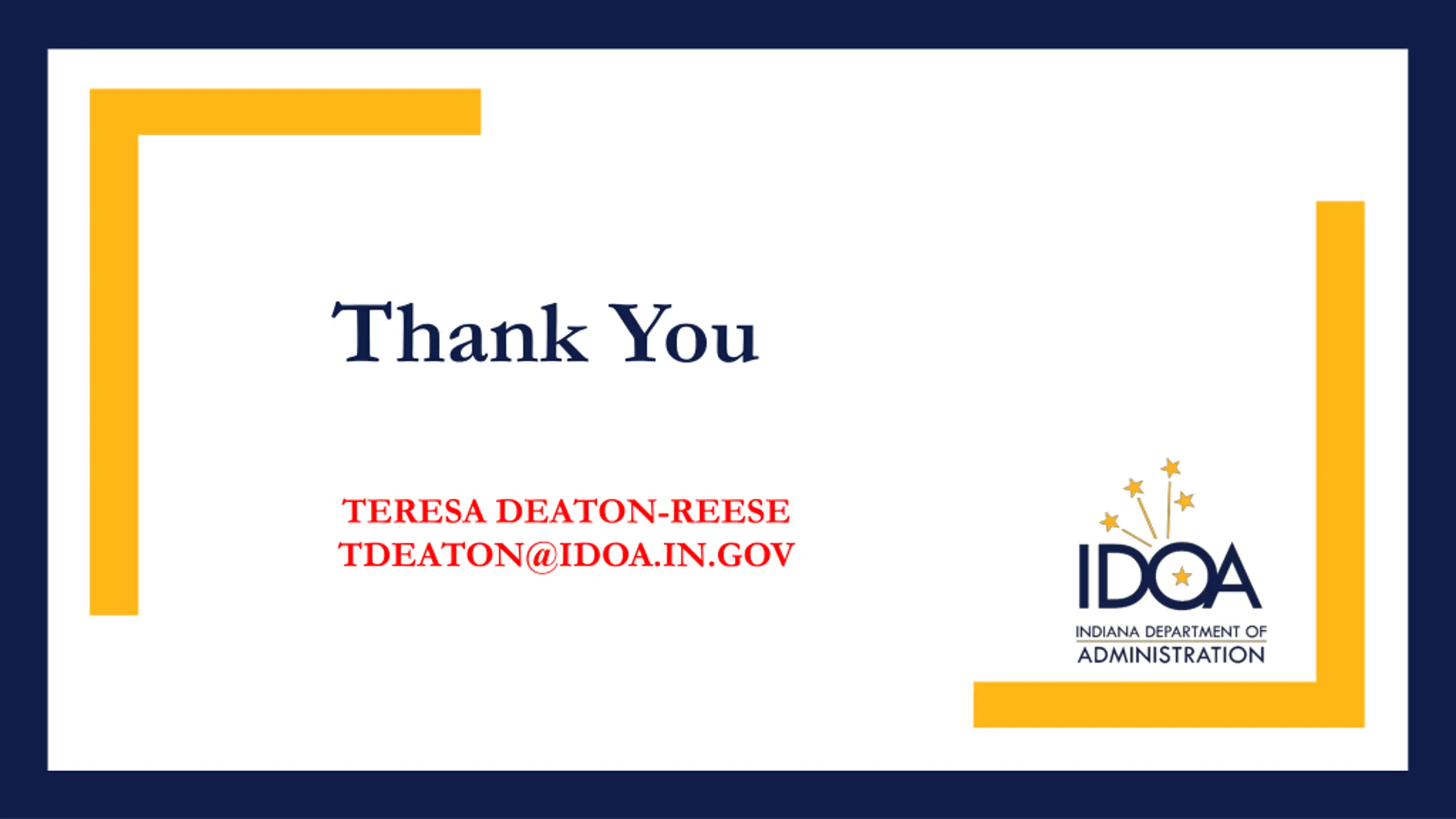 Thank You TERESA DEATON-REESE TDEATON@IDOA.IN.GOV