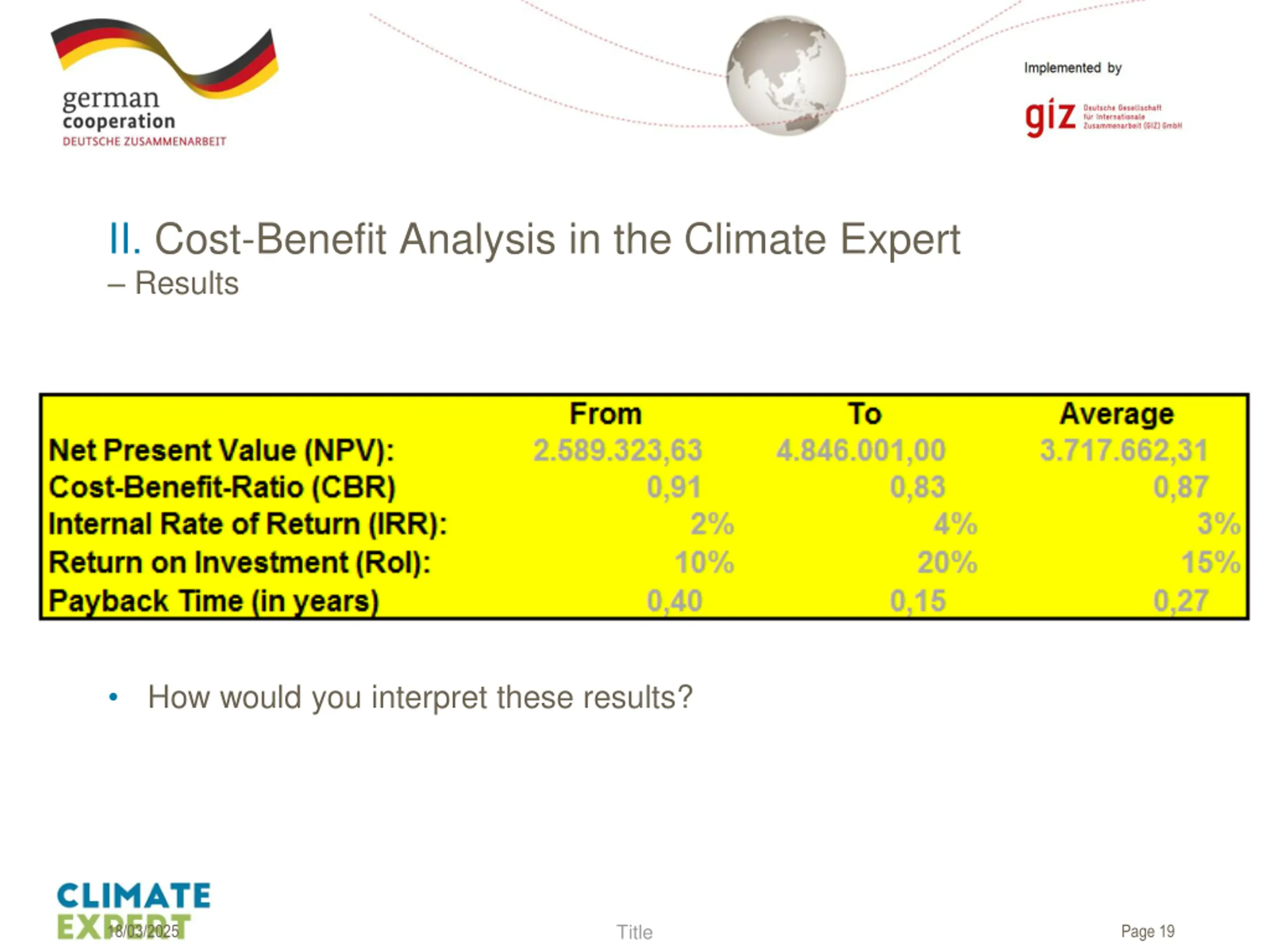 II. Cost-Benefit Analysis in the Climate Expert Results How would you interpret these results? Title 18/03/2025 Page 19