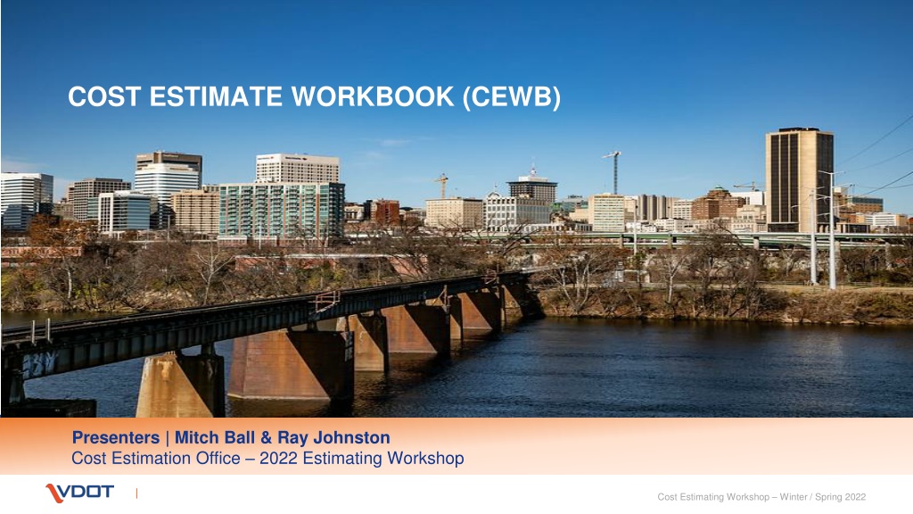 Introduction to Cost Estimate Workbook Cost Estimate Workbook Cost Estimate Workbook & User s Guide VDOT Department of Transportation Cost Estimation Office Page 5 Cost Estimating Workshop Winter / Spring 2022