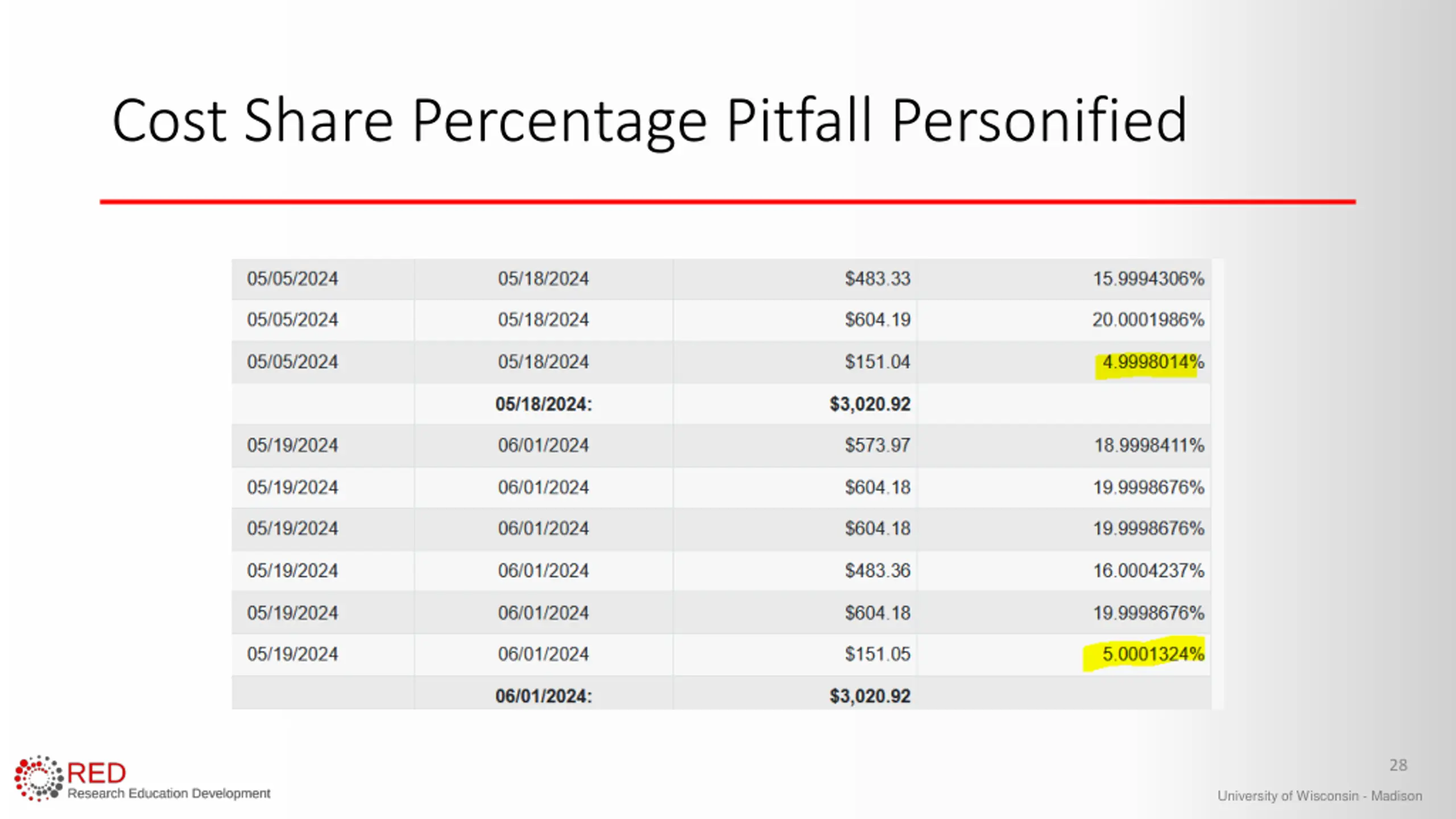Cost Share Percentage Pitfall Personified 28 University of Wisconsin - Madison