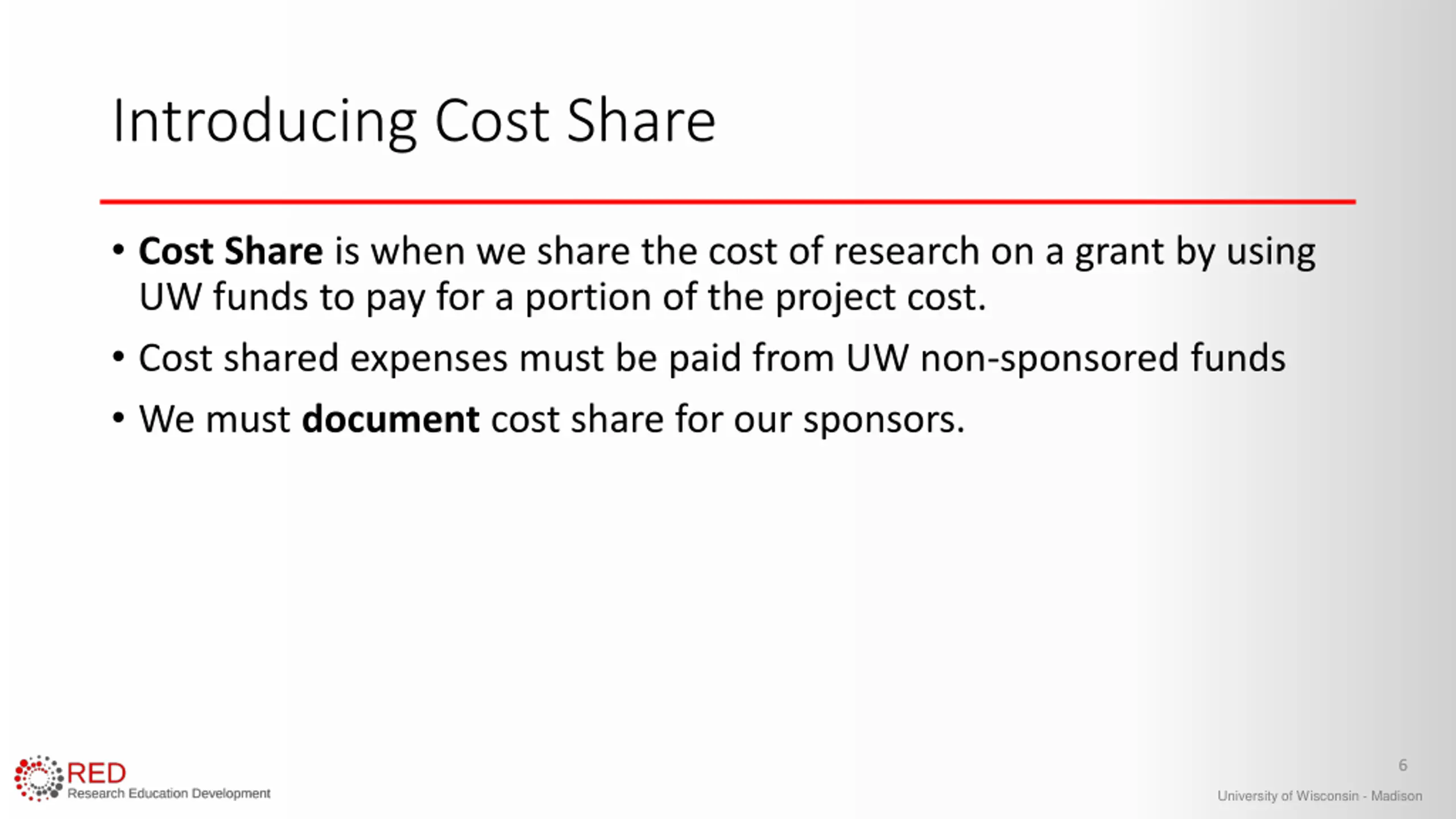 Cost Share 101 University of Wisconsin - Madison