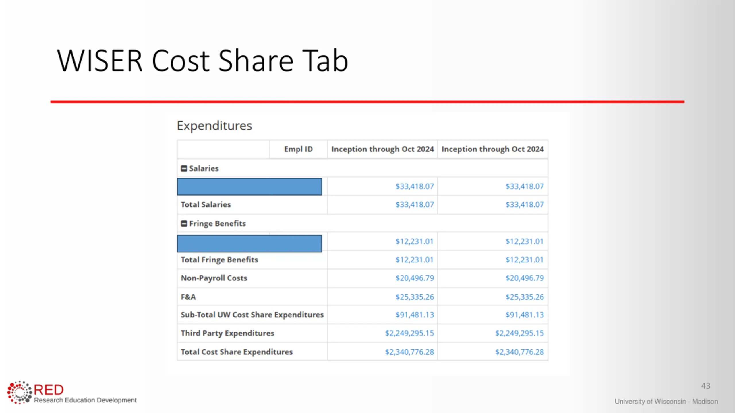 WISER Cost Share Tab 43 University of Wisconsin - Madison
