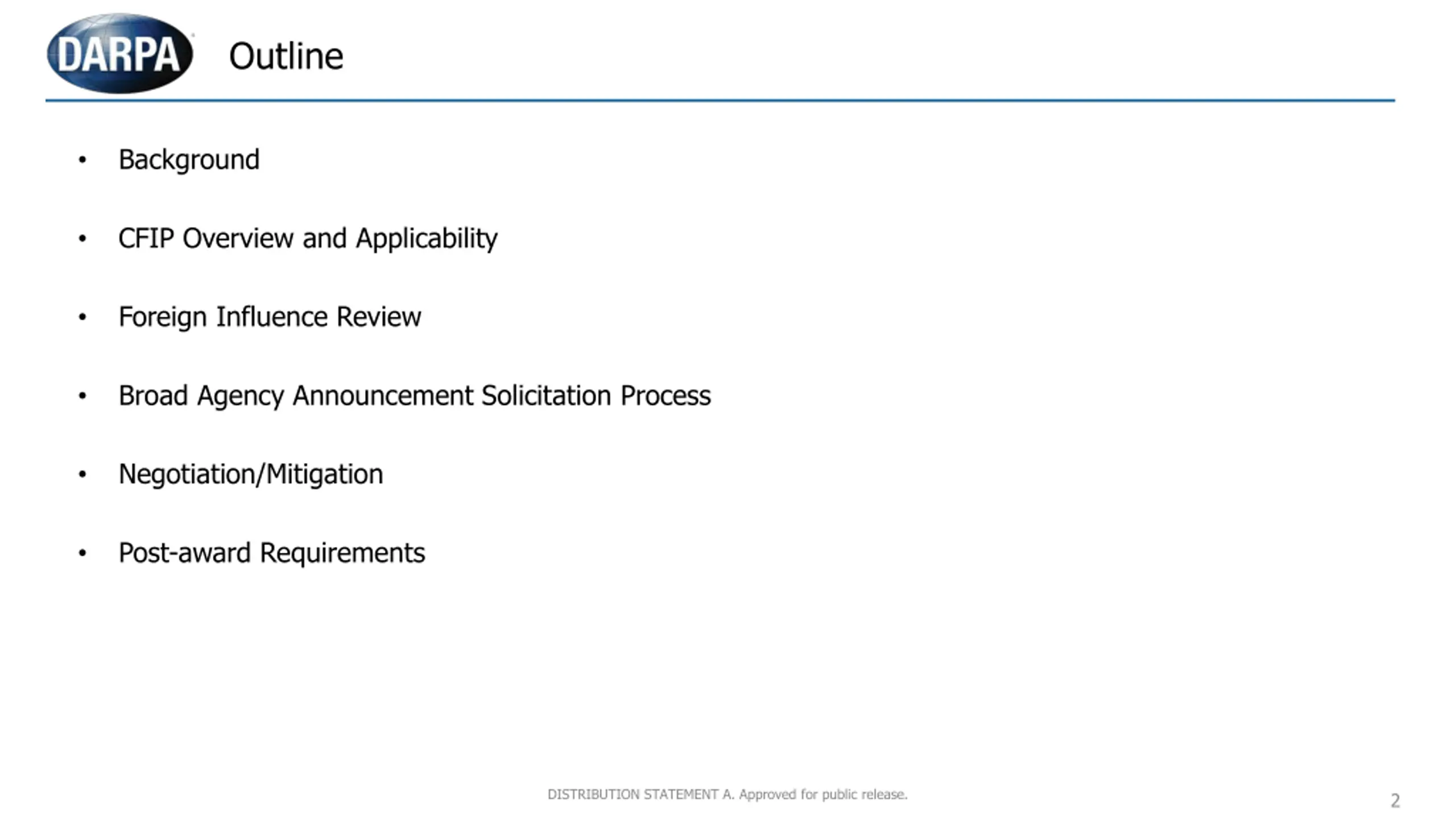 Outline Background CFIP Overview and Applicability Foreign Influence Review Broad Agency Announcement Solicitation Process Negotiation/Mitigation Post-award Requirements DISTRIBUTION STATEMENT A. Approved for public release. 2