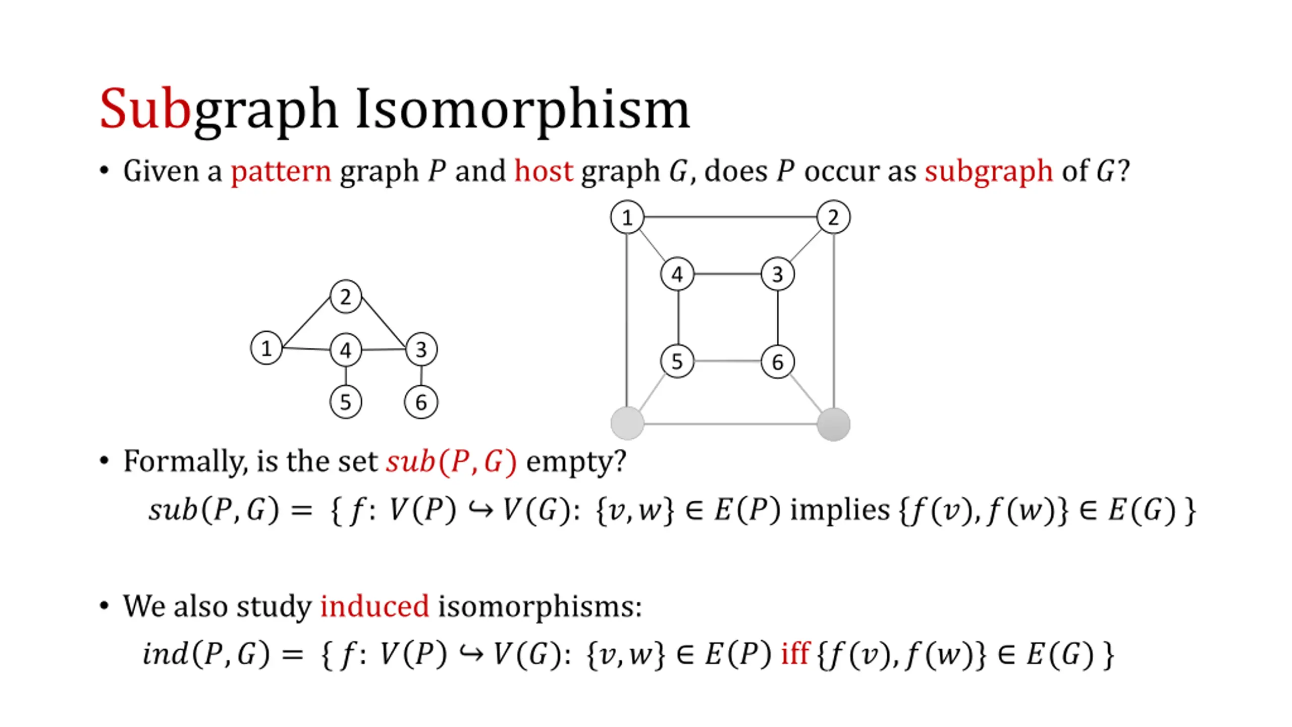 Subgraph Isomorphism Given a pattern graph ? and host graph ?, does ? occur as subgraph of ??