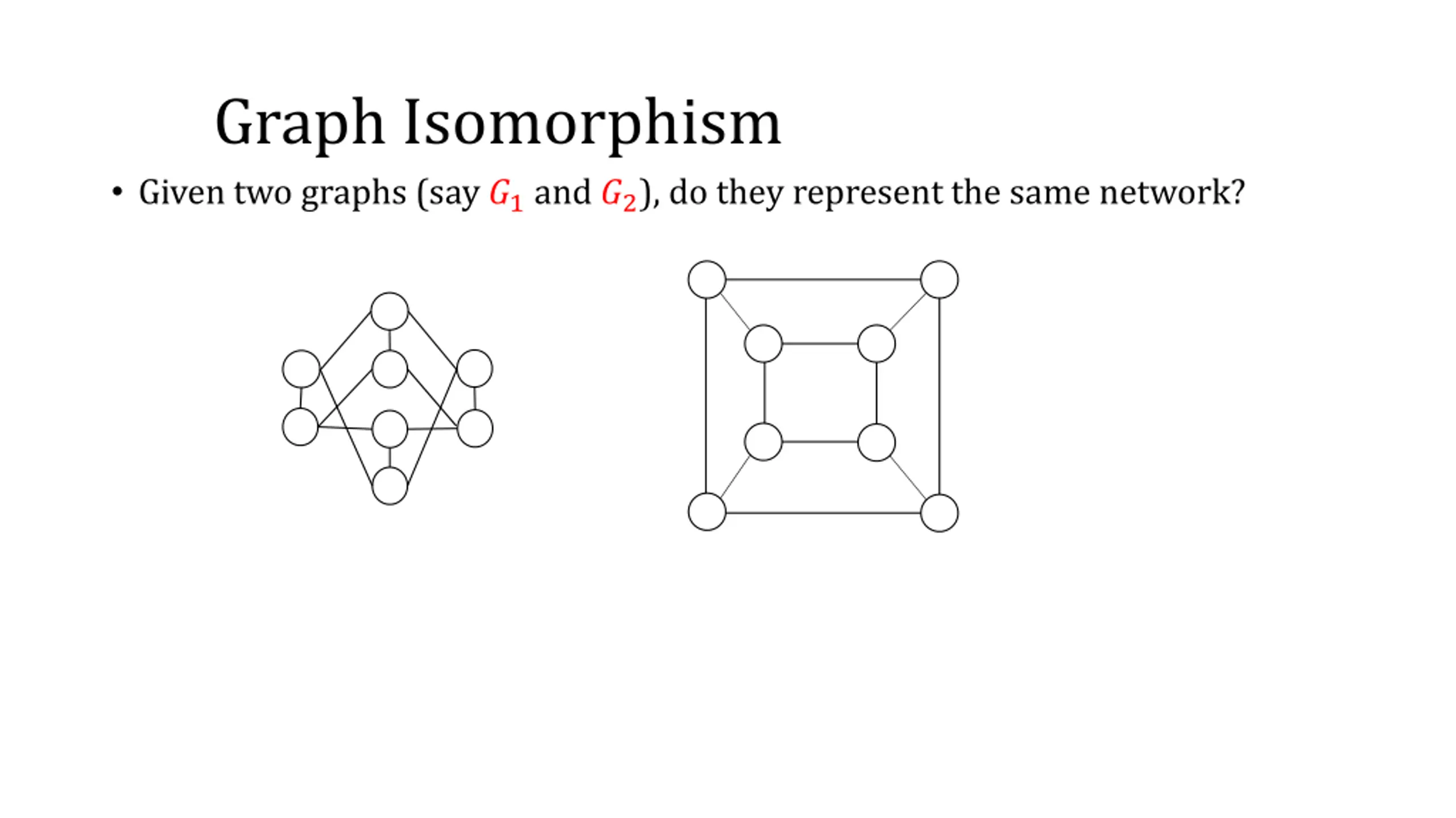 subGraph Isomorphism Given two graphs (say ?1and ?2), do they represent the same network?