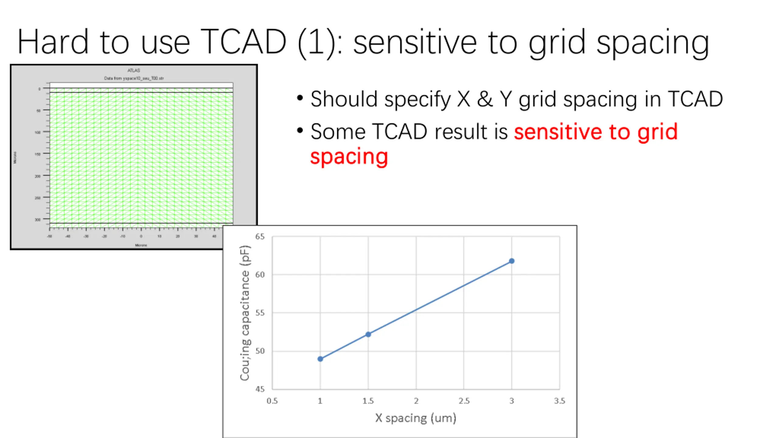 Hard to use TCAD (1): sensitive to grid spacing Should specify X & Y grid spacing in TCAD Some TCAD result is sensitive to grid spacing spacing sensitive to grid