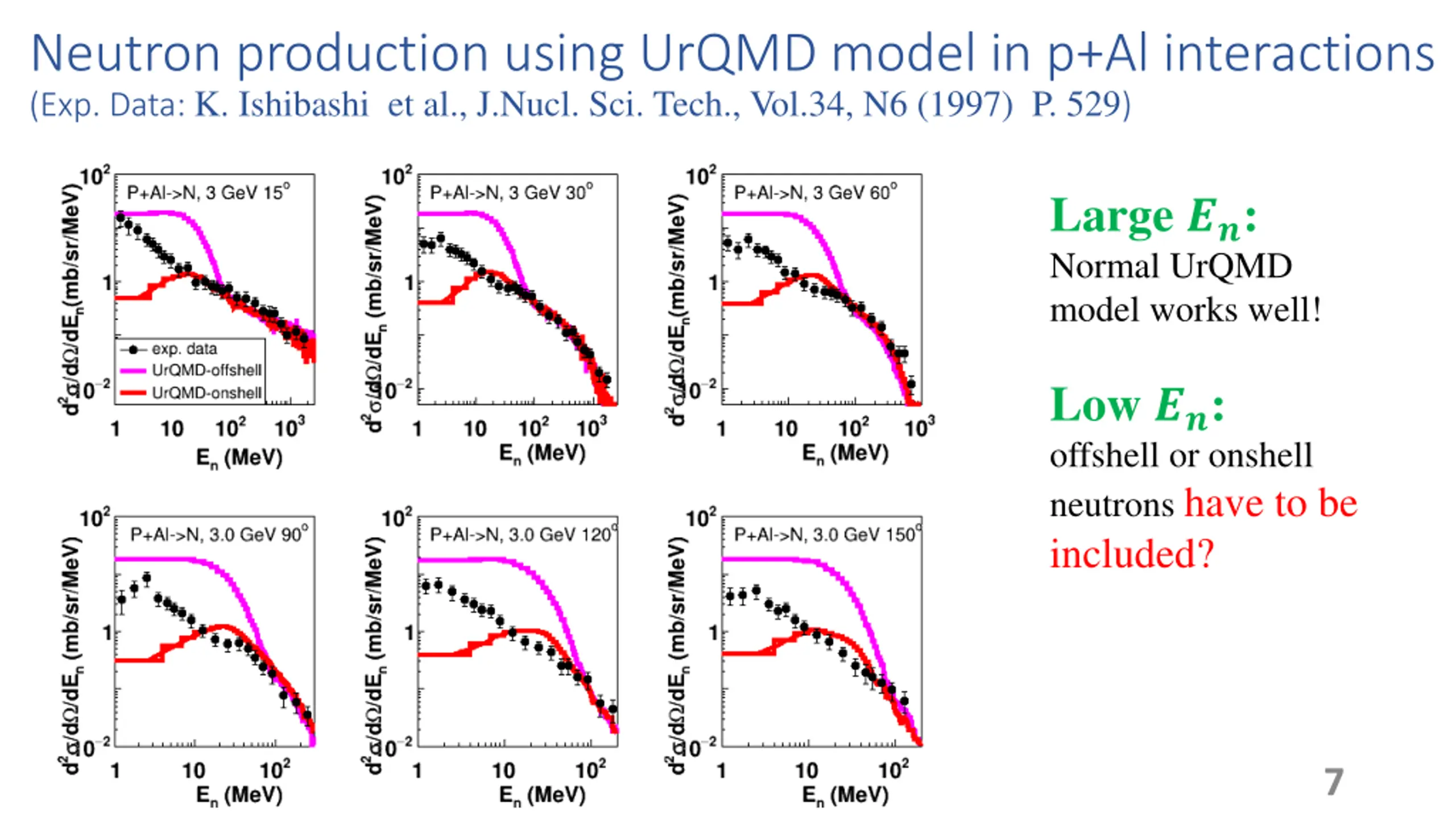 Neutron production using UrQMD model in p+Al interactions (Exp. Data: K. Ishibashi et al., J.Nucl. Sci. Tech., Vol.34, N6 (1997) P. 529) Large ??: Normal UrQMD model works well! Low ??: offshell or onshell neutrons have to be included? 7