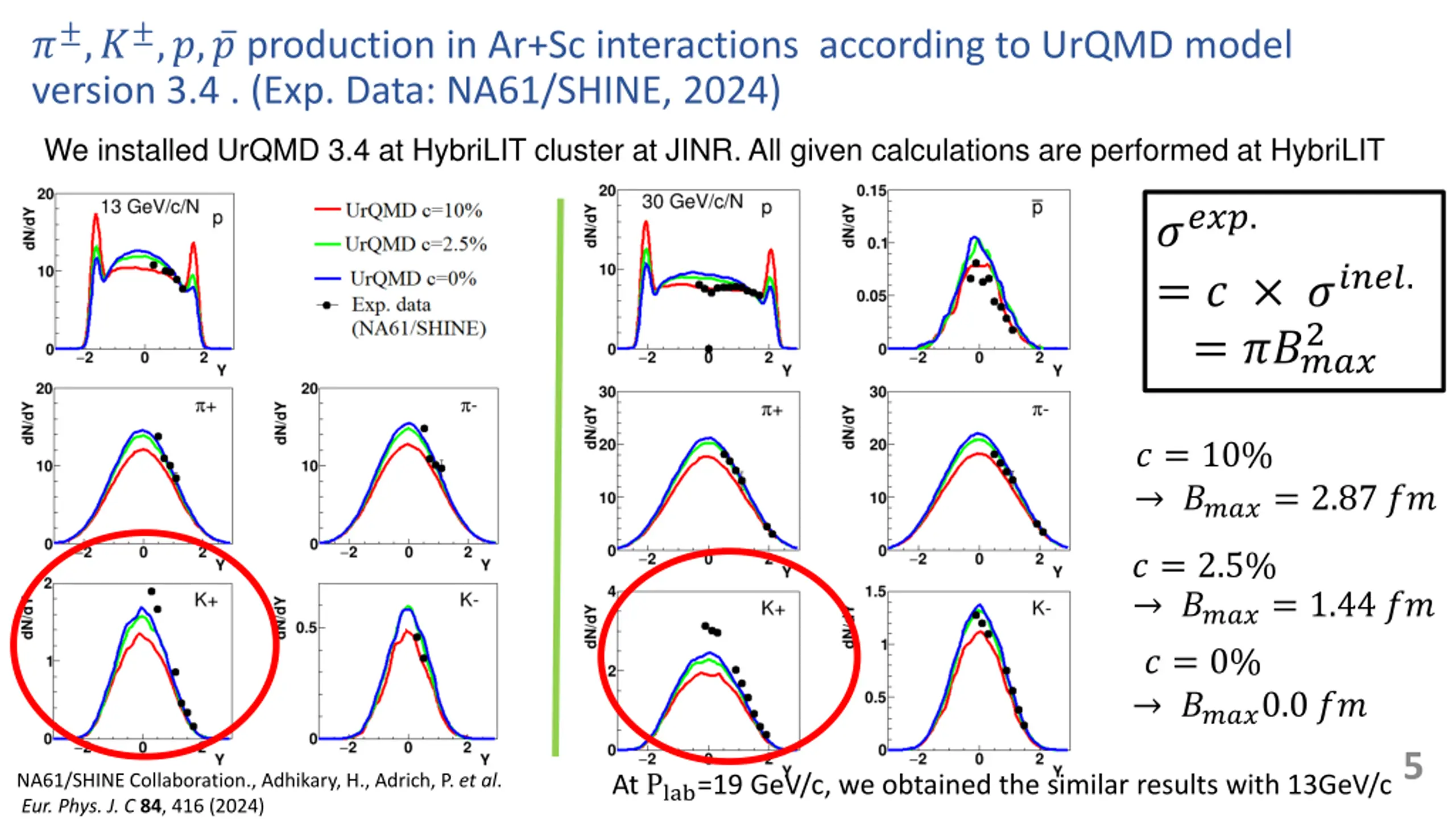 ?,?,?, ? production in Ar+Sc interactions according to UrQMD model version 3.4 . (Exp. Data: NA61/SHINE, 2024) We installed UrQMD 3.4 at HybriLIT cluster at JINR. All given calculations are performed at HybriLIT ????. = ? ?????. = ????? 2 ? = 10% ????= 2.87 ?? ? = 2.5% ????= 1.44 ?? ? = 0% ????0.0 ?? 5 At Plab=19 GeV/c, we obtained the similar results with 13GeV/c NA61/SHINE Collaboration., Adhikary, H., Adrich, P. et al. Eur. Phys. J. C 84, 416 (2024)