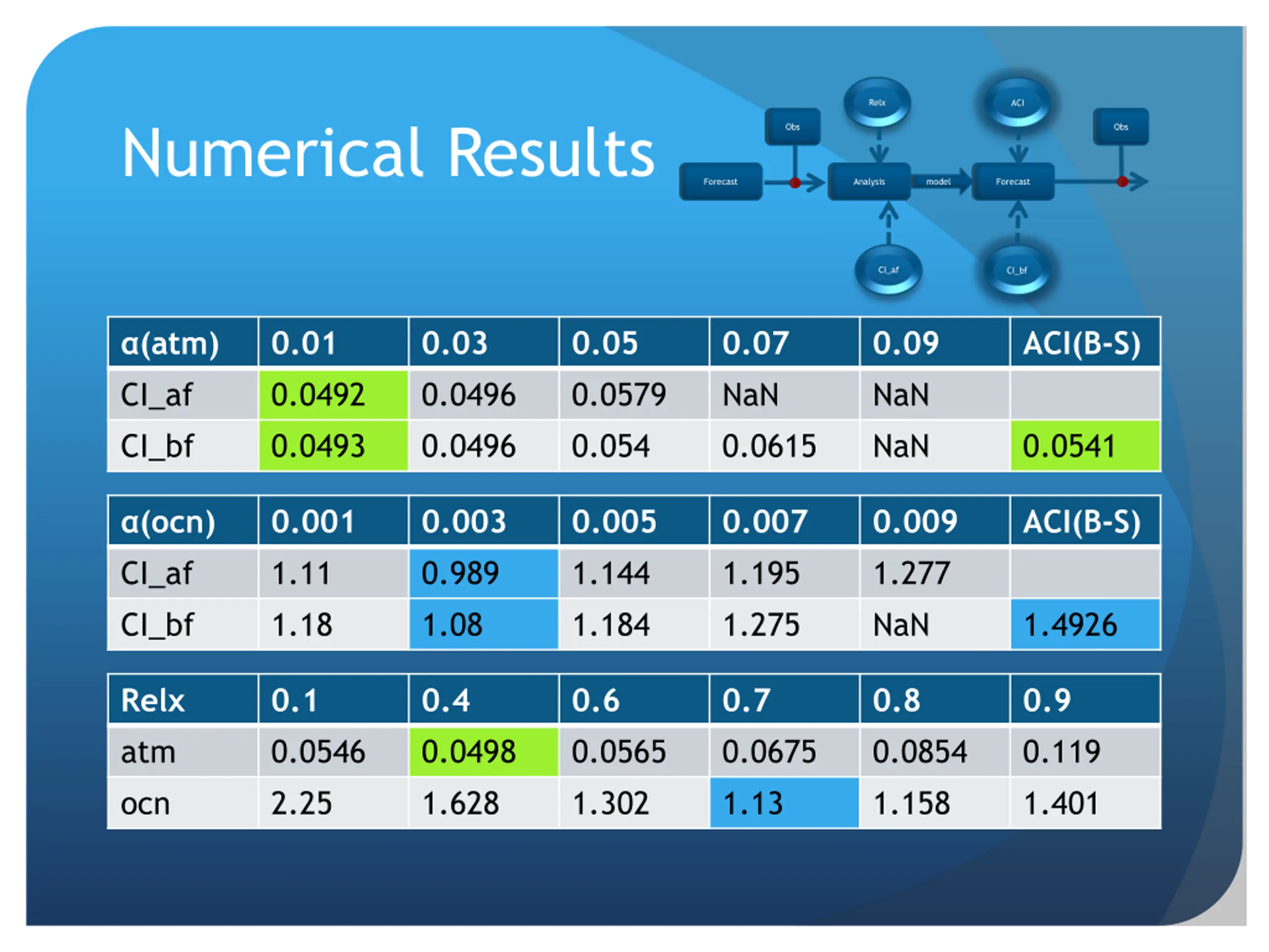 Numerical Results and Analysis Observation: B-S1 improved upon B-S CI_af 0.0492 0.989 CI_bf 0.0493 1.08 Relx 0.0498 1.13 ACI(B-S) 0.0541 1.4926 ACI(B-S1) 0.0534 1.0794 atm ocn