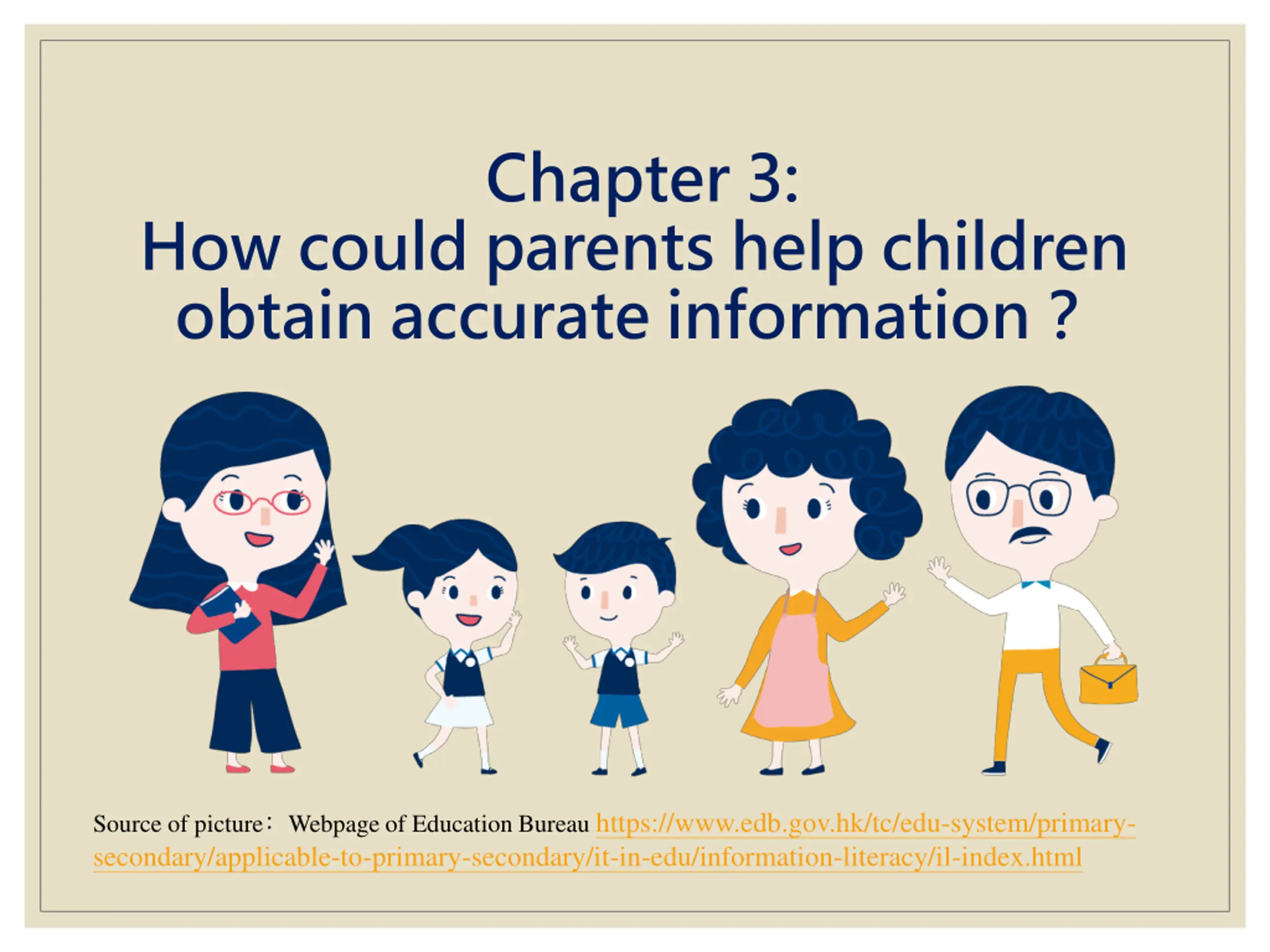 Chapter 3: How could parents help children obtain accurate information Source of picture Webpage of Education Bureau https://www.edb.gov.hk/tc/edu-system/primary- secondary/applicable-to-primary-secondary/it-in-edu/information-literacy/il-index.html