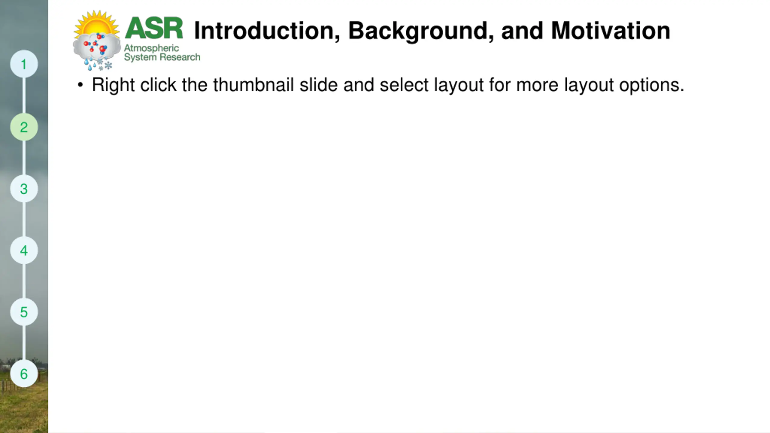 Introduction, Background, and Motivation 1 Right click the thumbnail slide and select layout for more layout options. 2 3 4 5 6