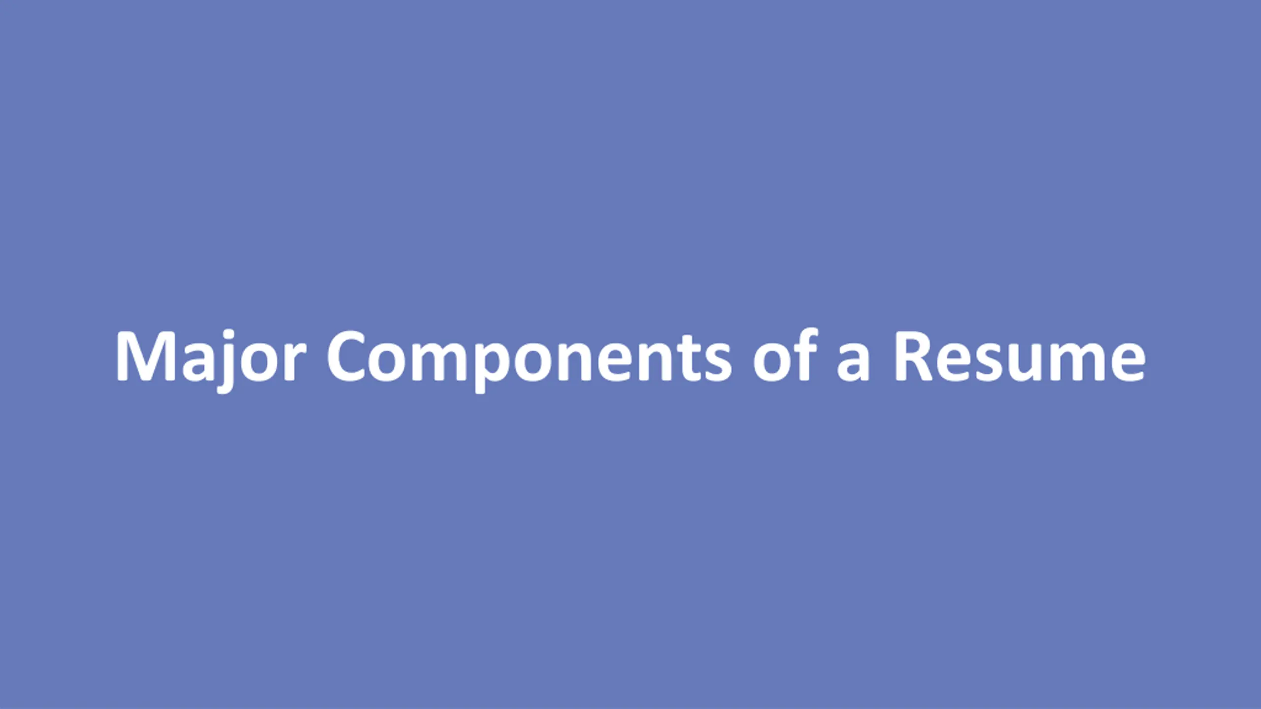 Reviewing Major Components: 1. Education 2. Experience 3. Community Involvement 4. Awards and Accomplishments 5. Publications and Presentations