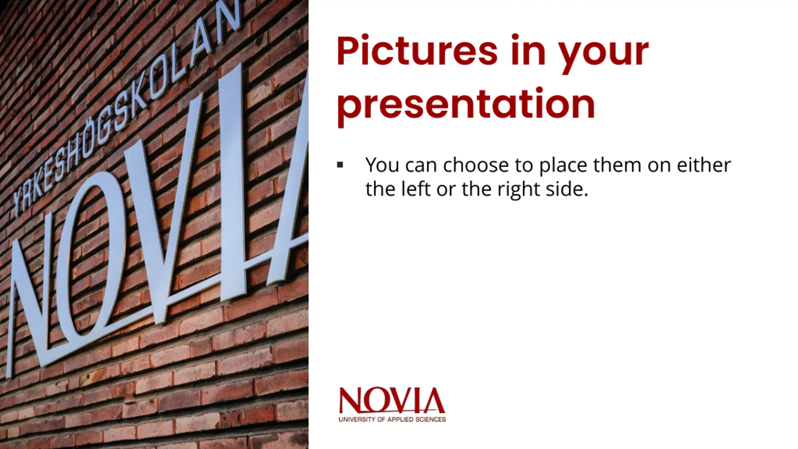Pictures in your presentation You can choose to place them on either the left or the right side.