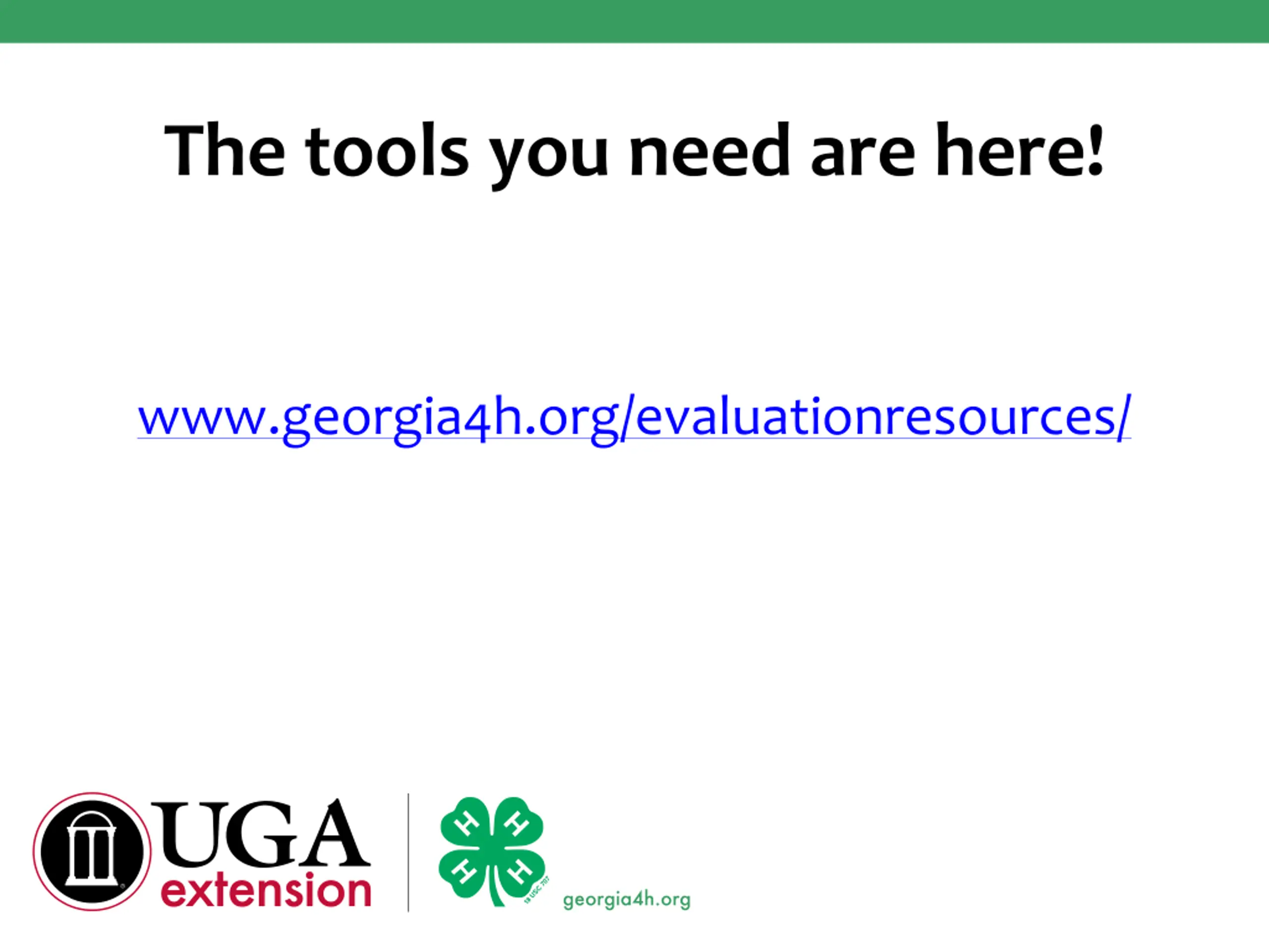 The tools you need are here! www.georgia4h.org/evaluationresources/