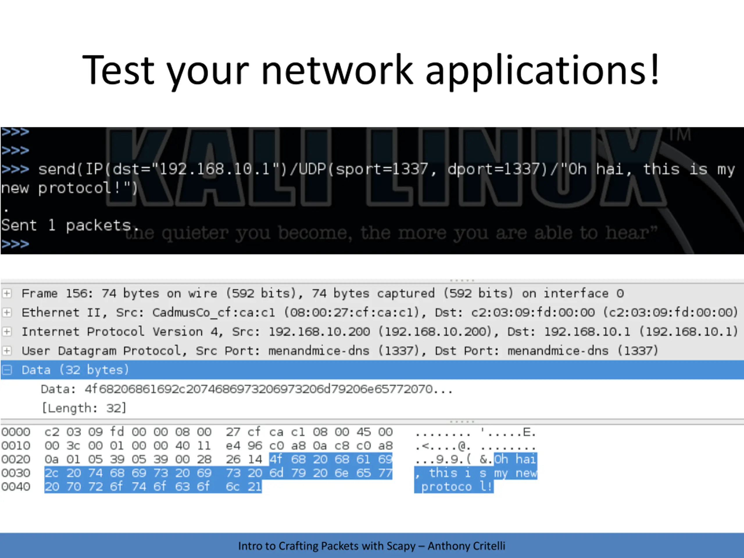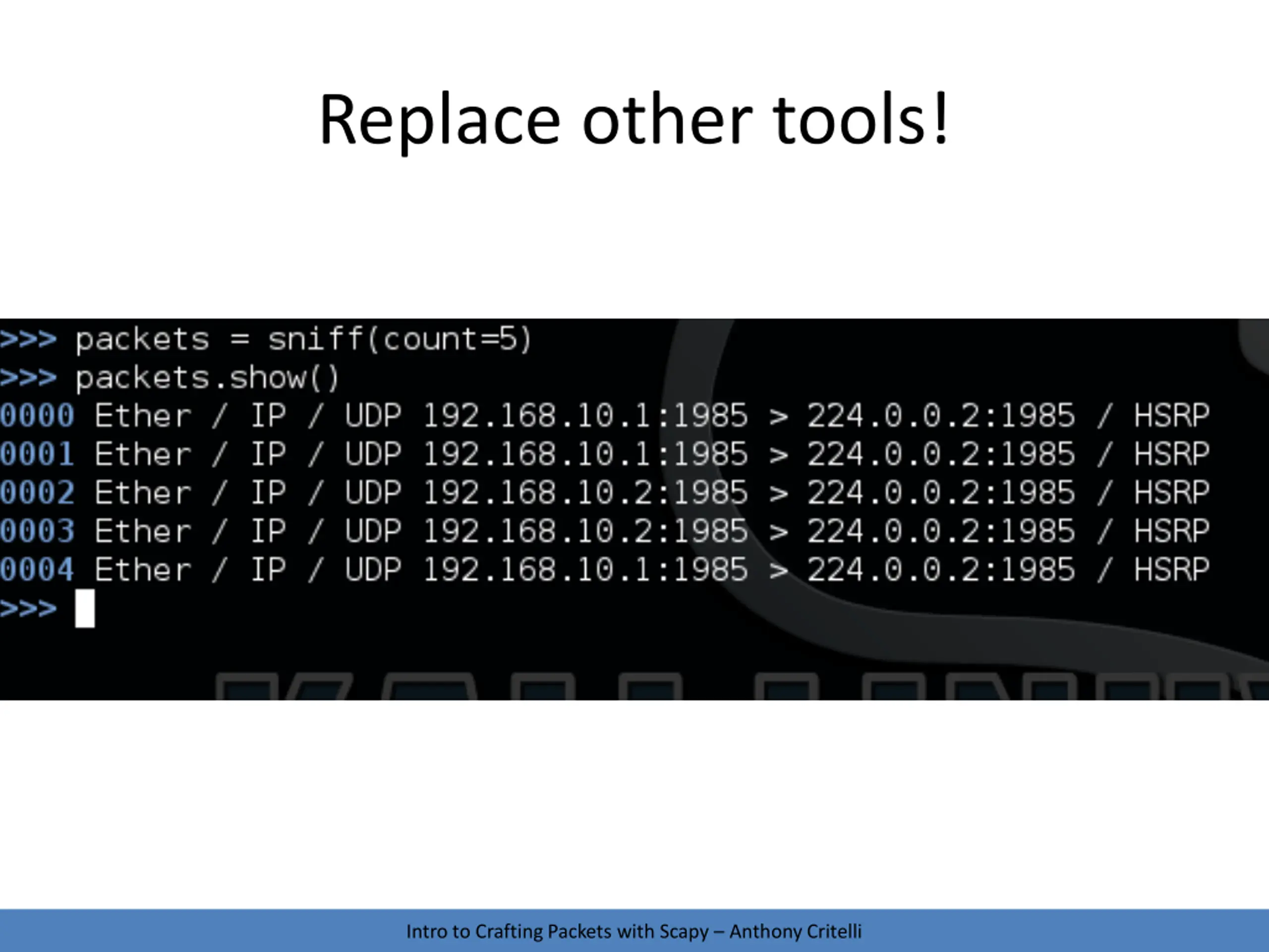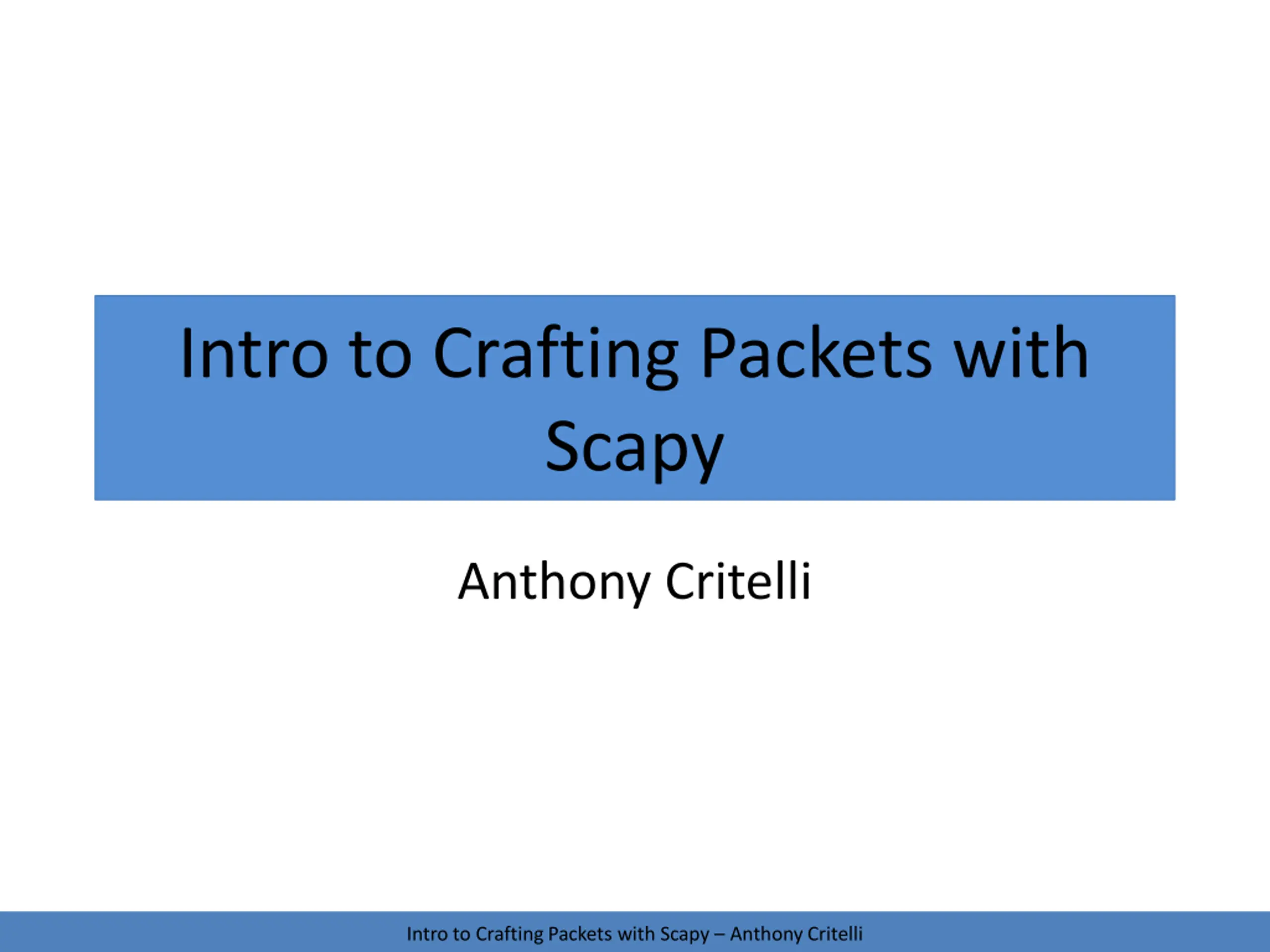 Replace other tools! Intro to Crafting Packets with Scapy Anthony Critelli
