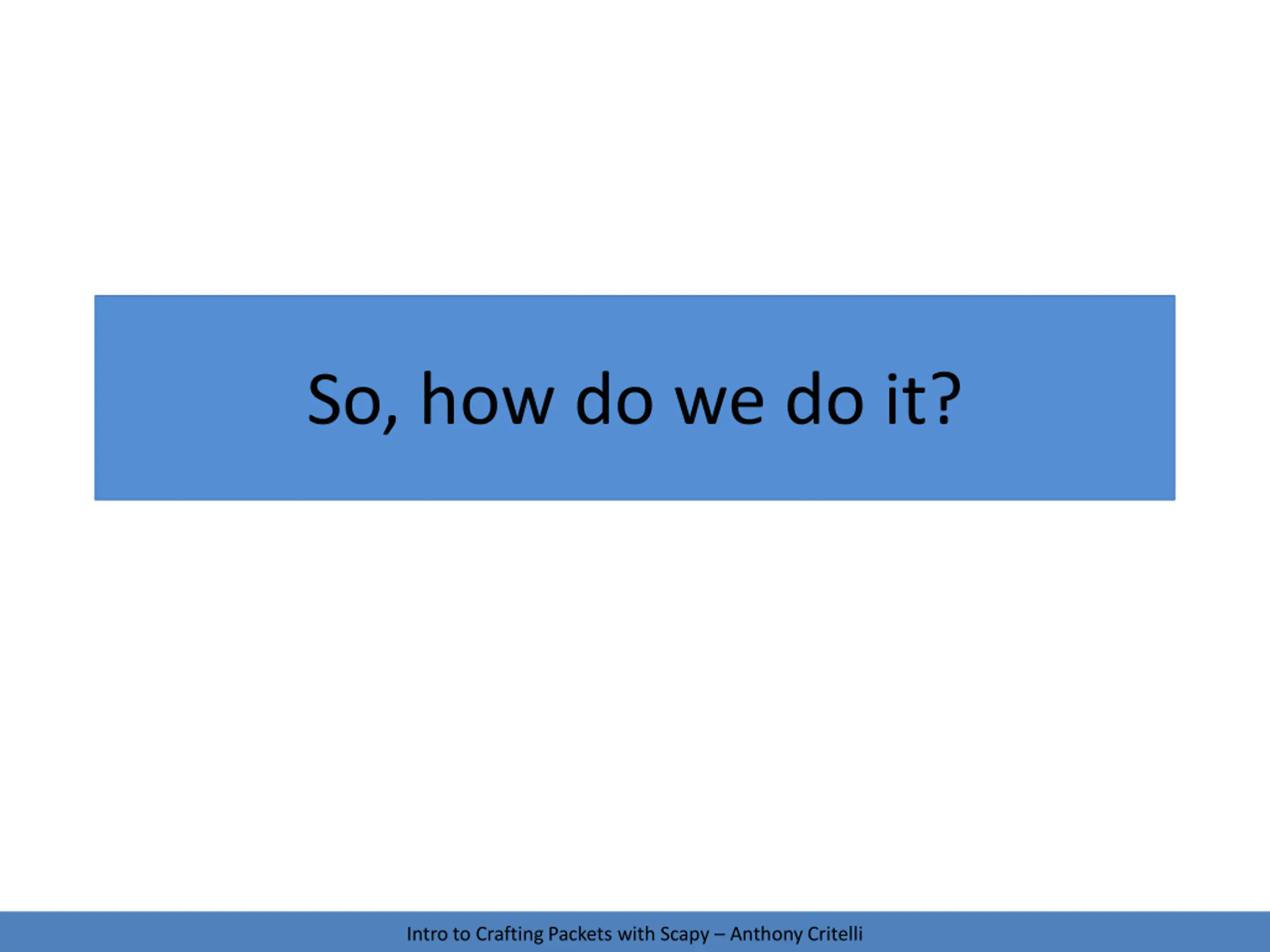 So, how do we do it? Intro to Crafting Packets with Scapy Anthony Critelli