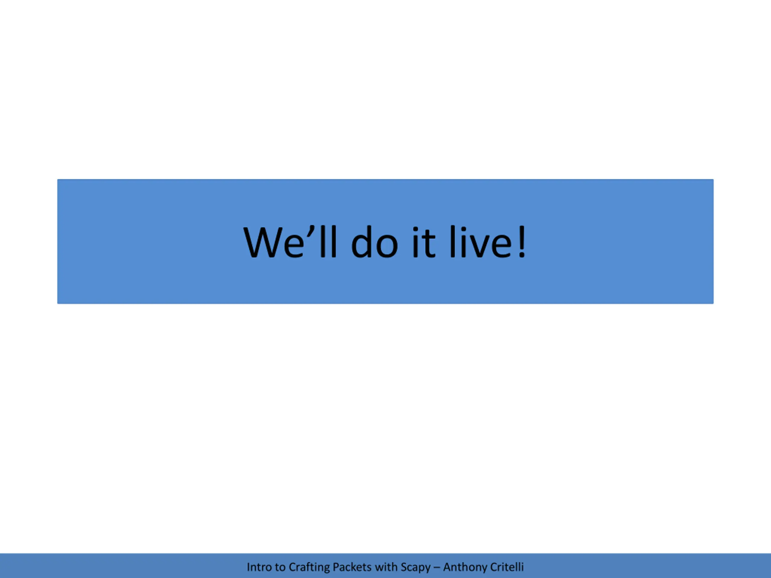 Well do it live! Intro to Crafting Packets with Scapy Anthony Critelli