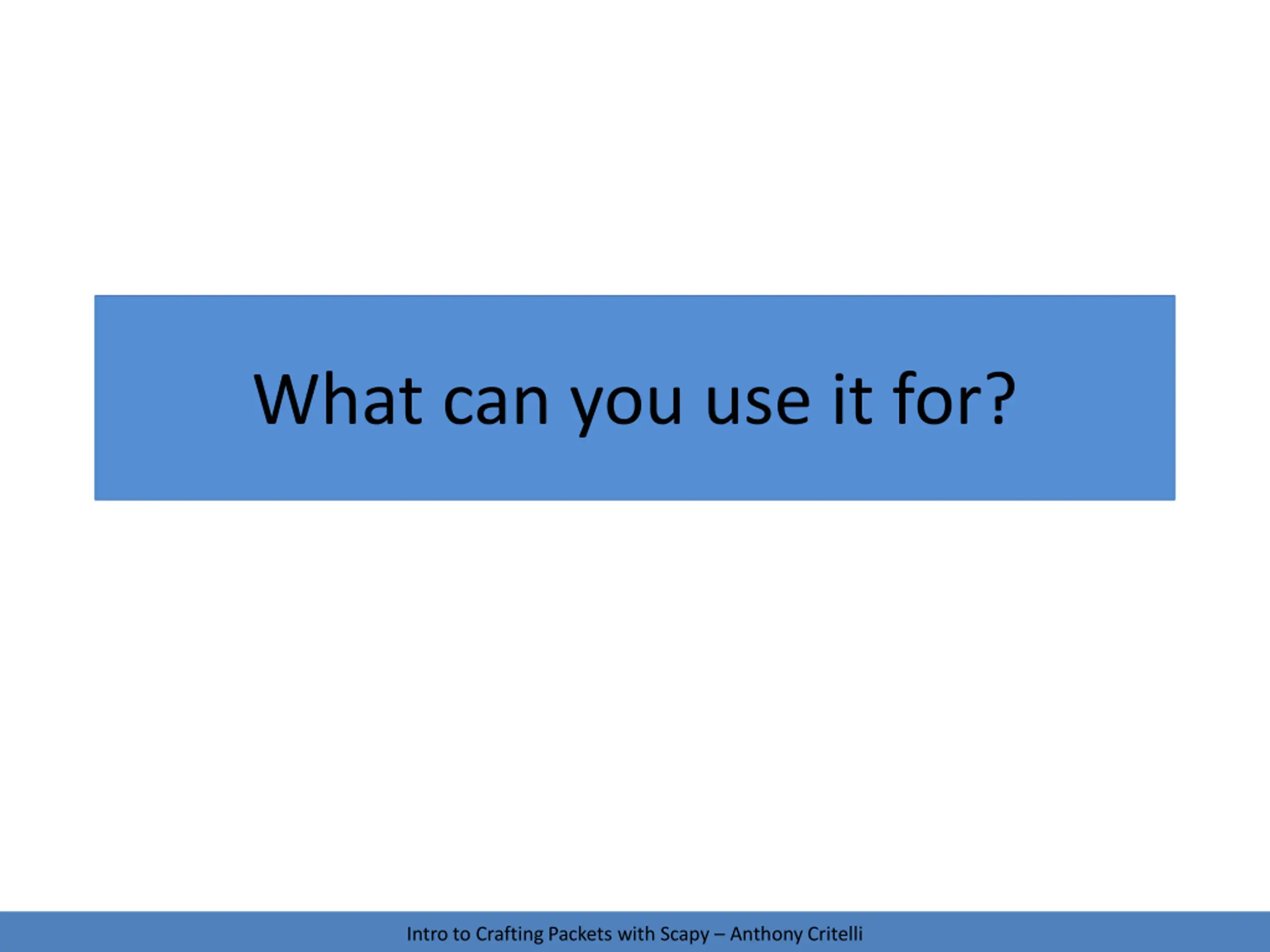 What can you use it for? Intro to Crafting Packets with Scapy Anthony Critelli