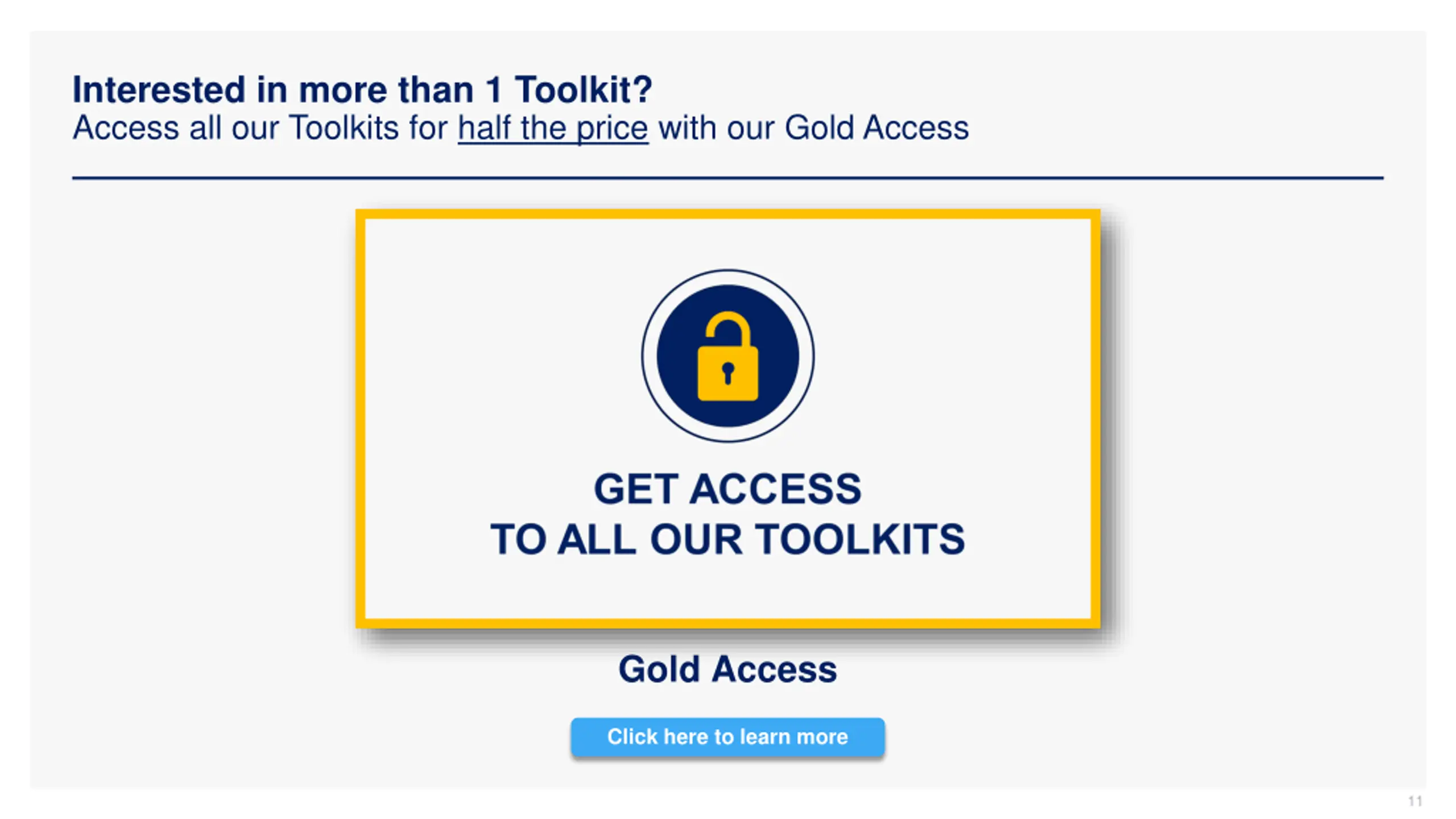 Interested in more than 1 Toolkit? Access all our Toolkits for half the price with our Gold Access Gold Access Click here to learn more Click here to learn more 11