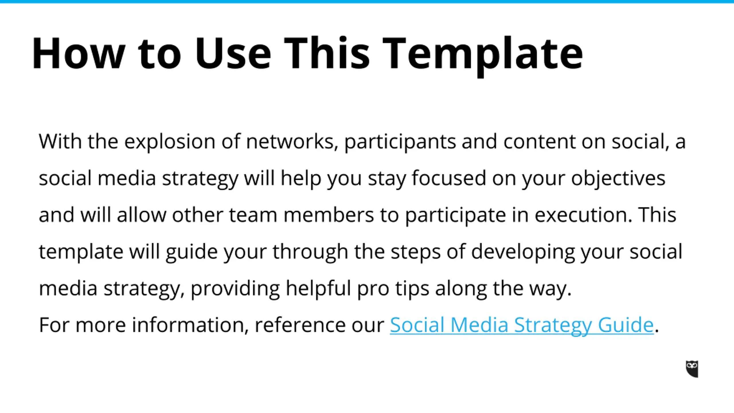 How to Use This Template With the explosion of networks, participants and content on social, a social media strategy will help you stay focused on your objectives and will allow other team members to participate in execution. This template will guide your through the steps of developing your social media strategy, providing helpful pro tips along the way. For more information, reference our Social Media Strategy Guide.