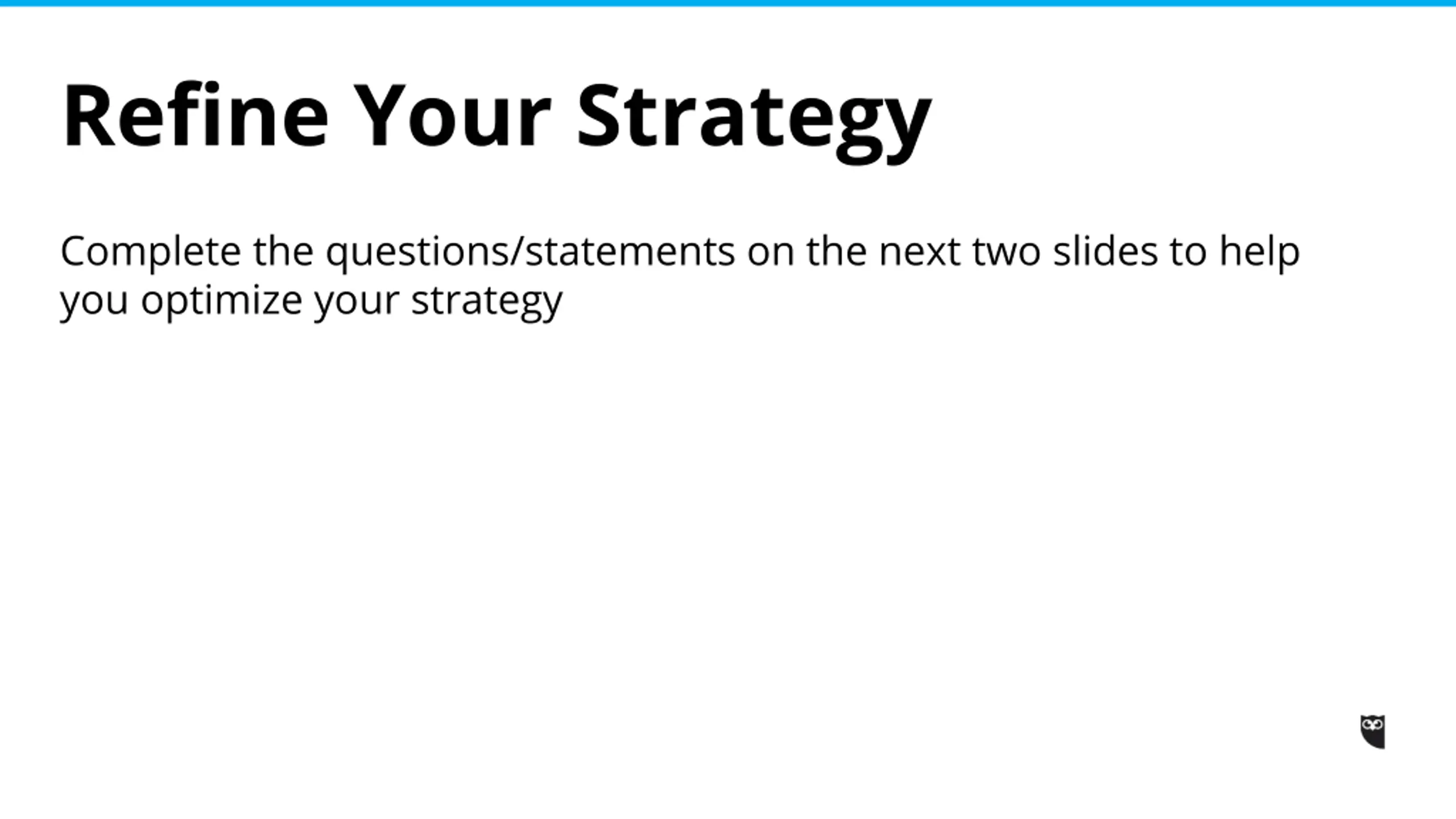 Refine Your Strategy Complete the questions/statements on the next two slides to help you optimize your strategy