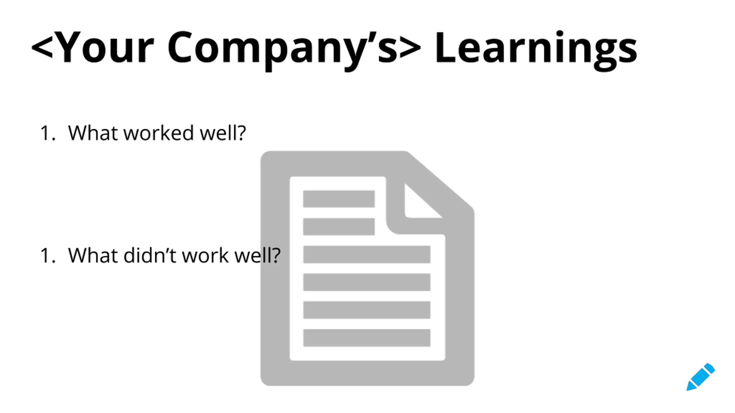 <Your Companys> Learnings 1. What worked well? 1. What didn t work well?