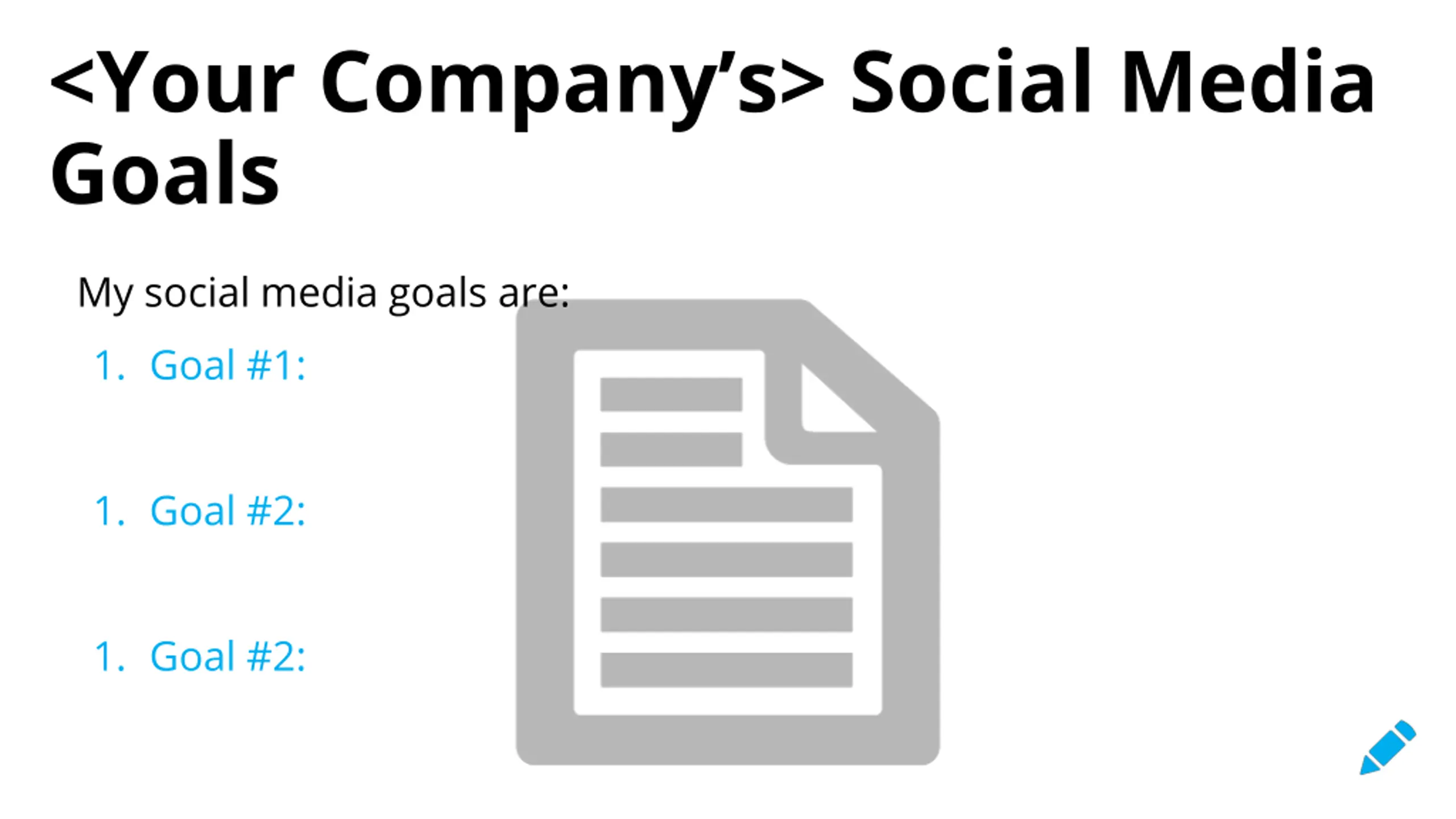<Your Companys> Social Media Goals My social media goals are: 1. Goal #1: 1. Goal #2: 1. Goal #2: