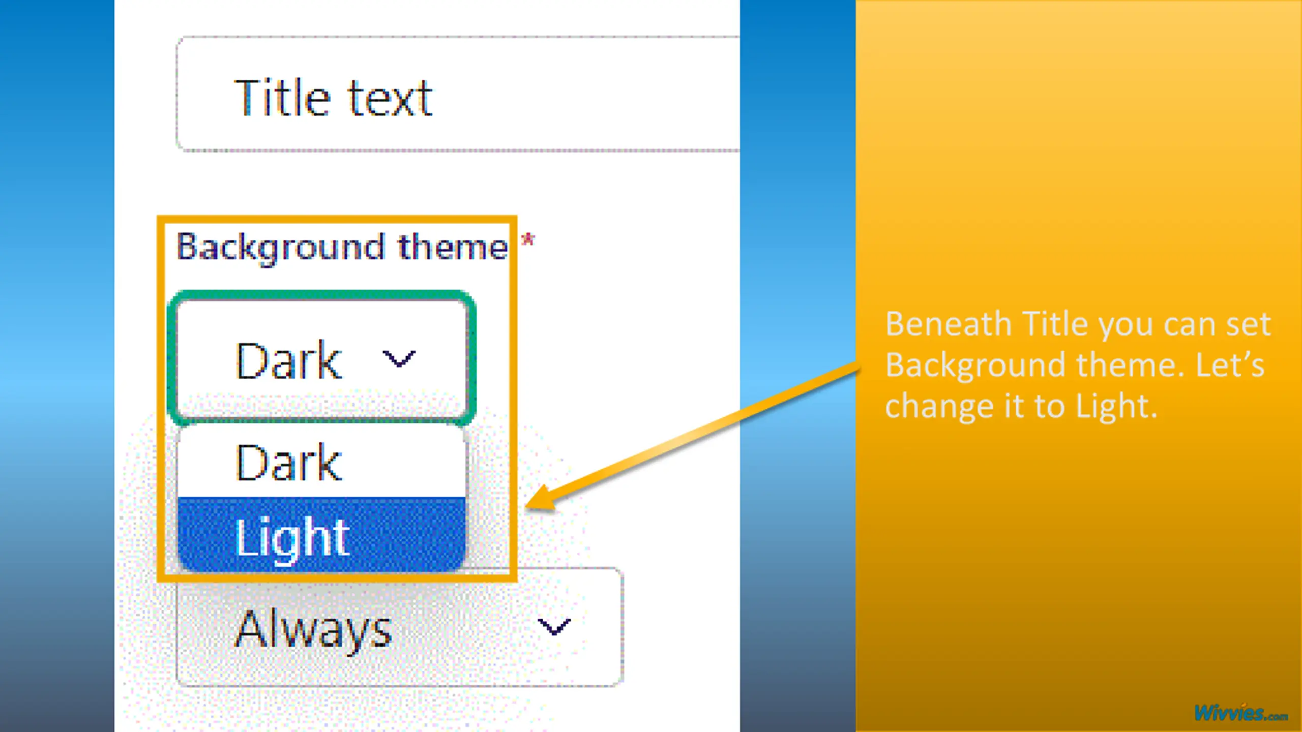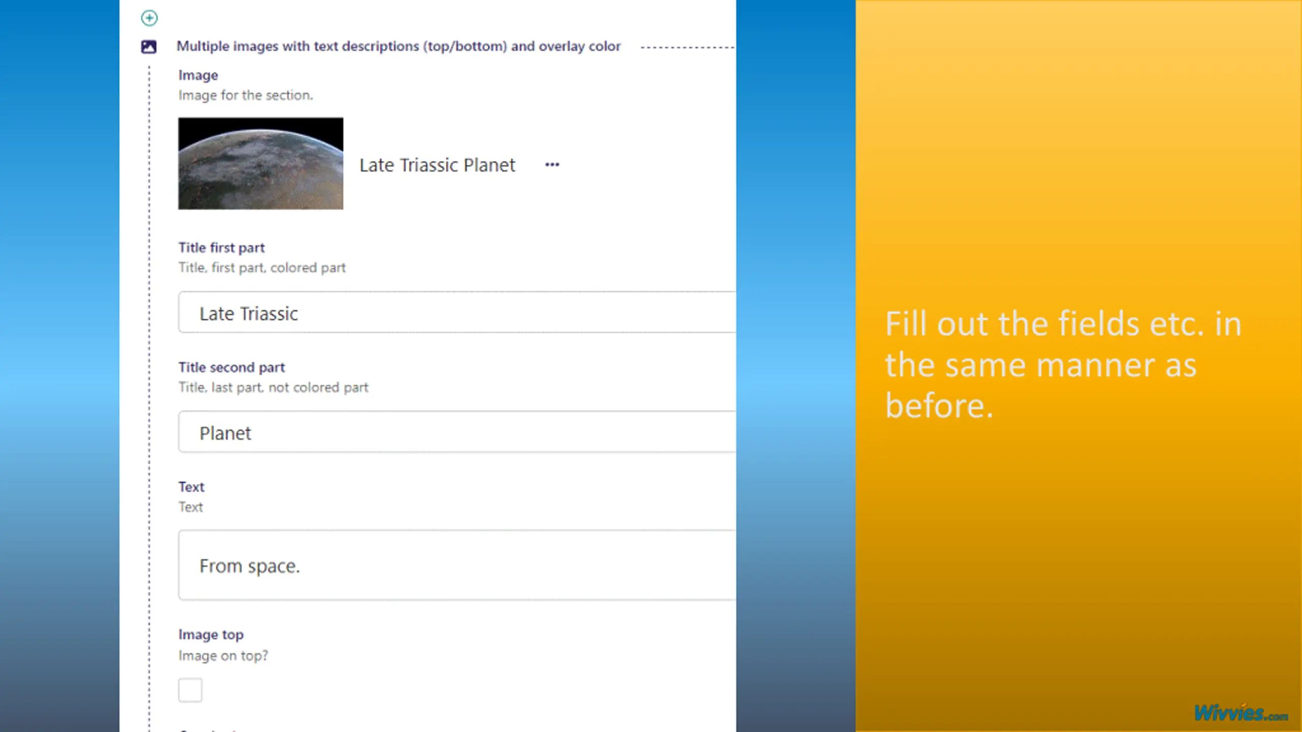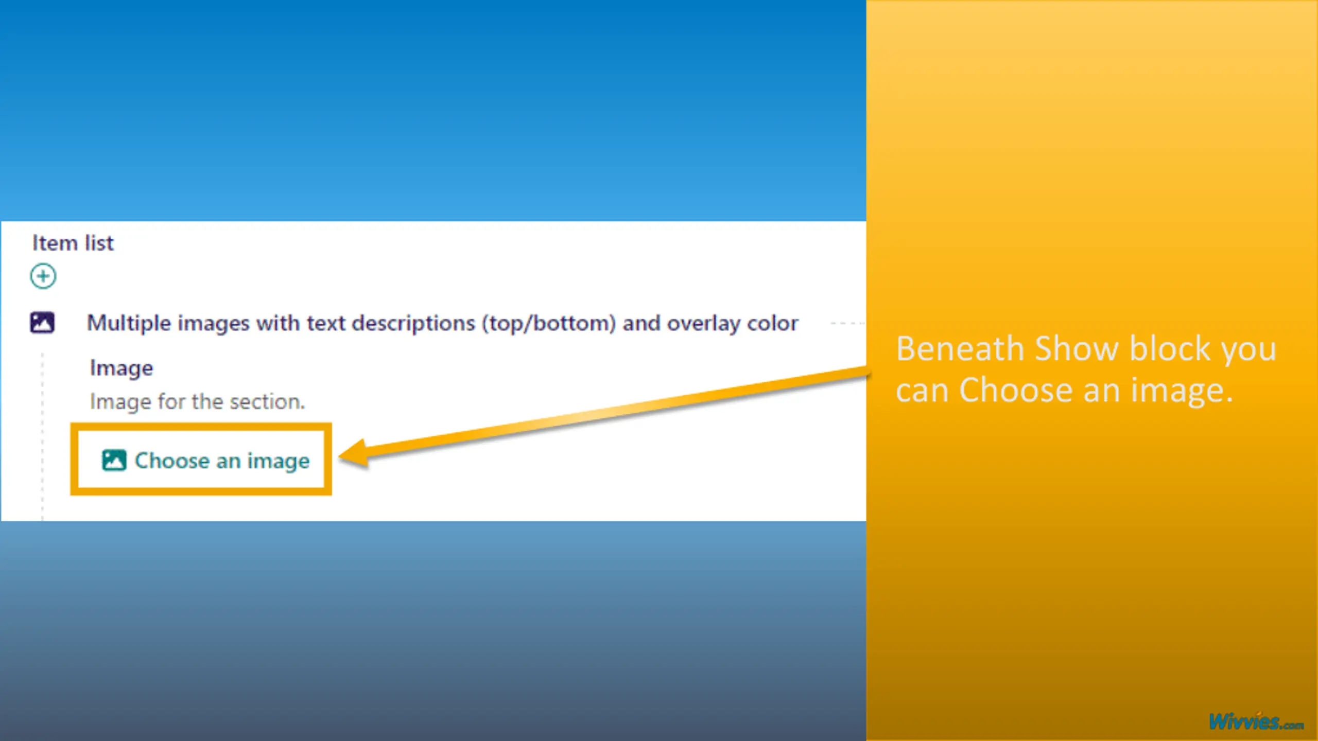 Beneath Image top you can set Opacity. The lower the number the more fully covered the image will be. We set it to 50. Beneath Opacity you set the Opacity color to overlay the image with. Here we pick Orange.