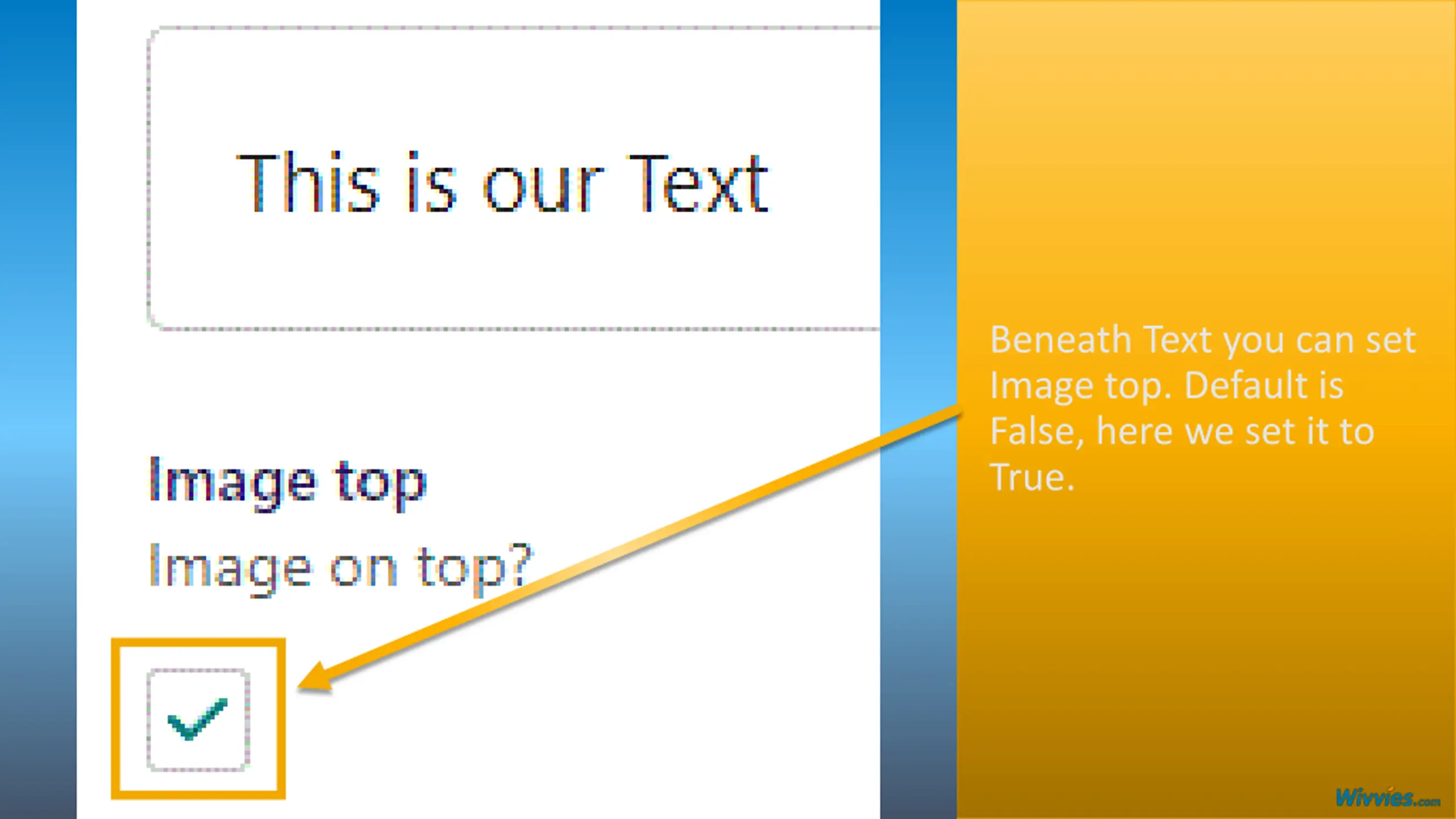 Beneath Text you can set Image top. Default is False, here we set it to True.
