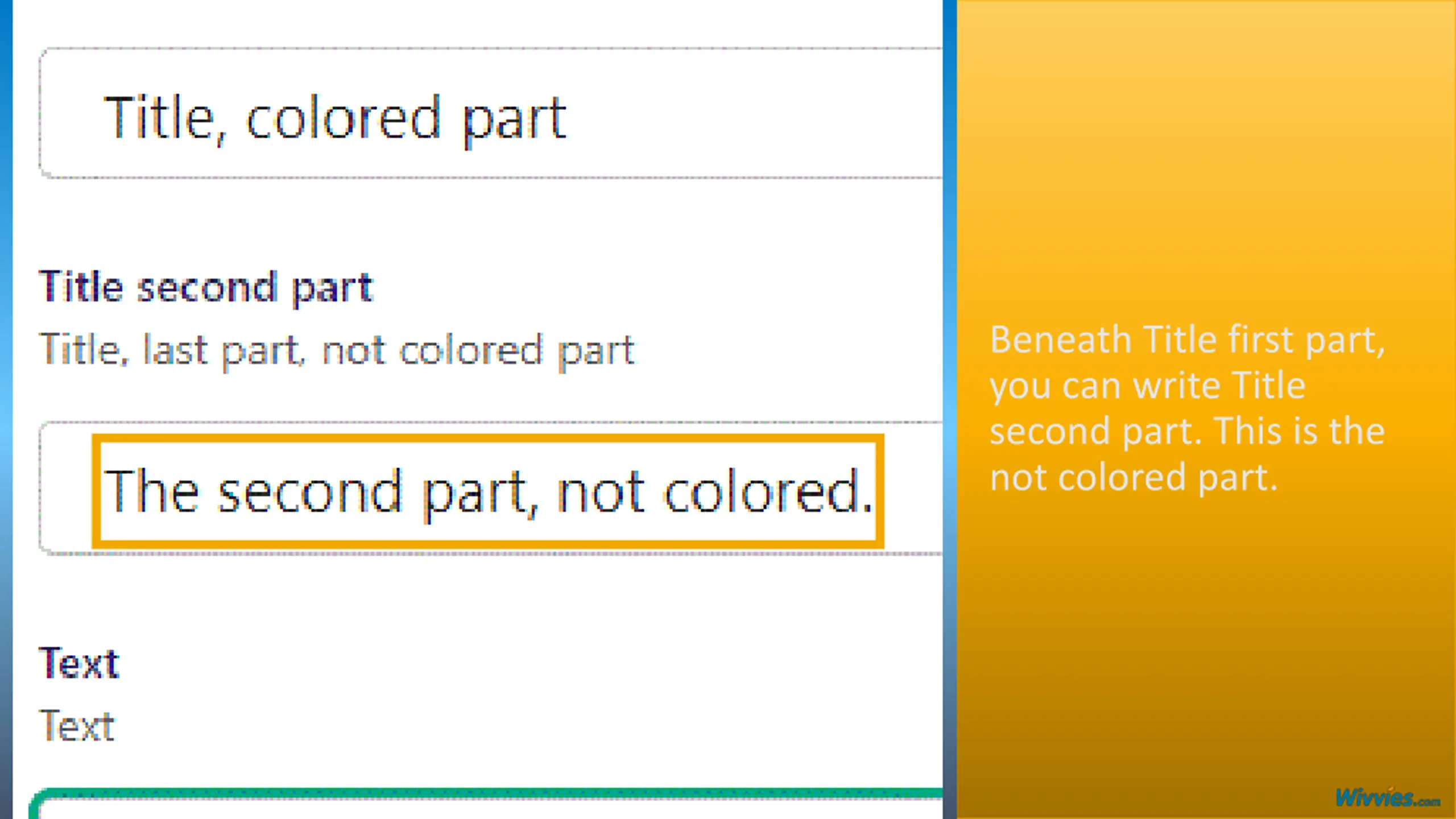 Beneath Title first part, you can write Title second part. This is the not colored part.
