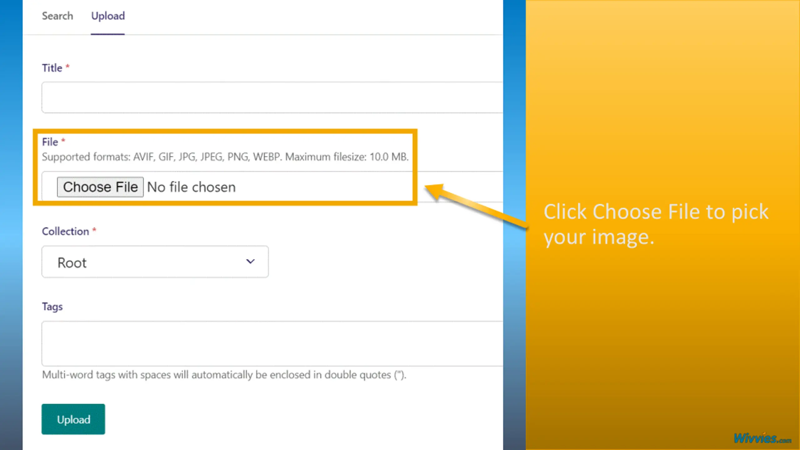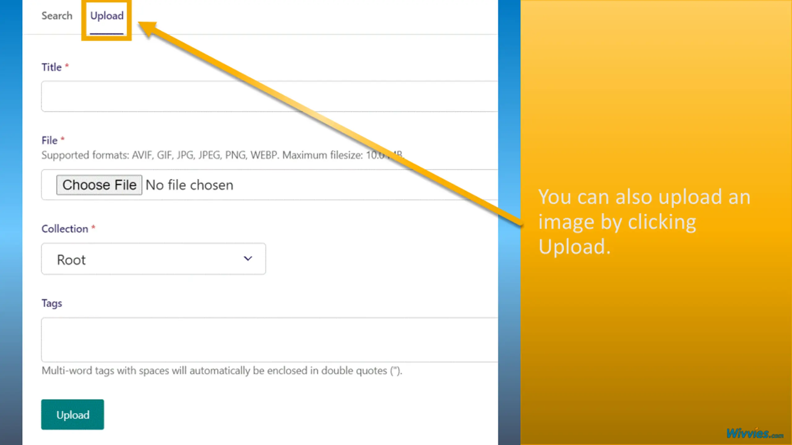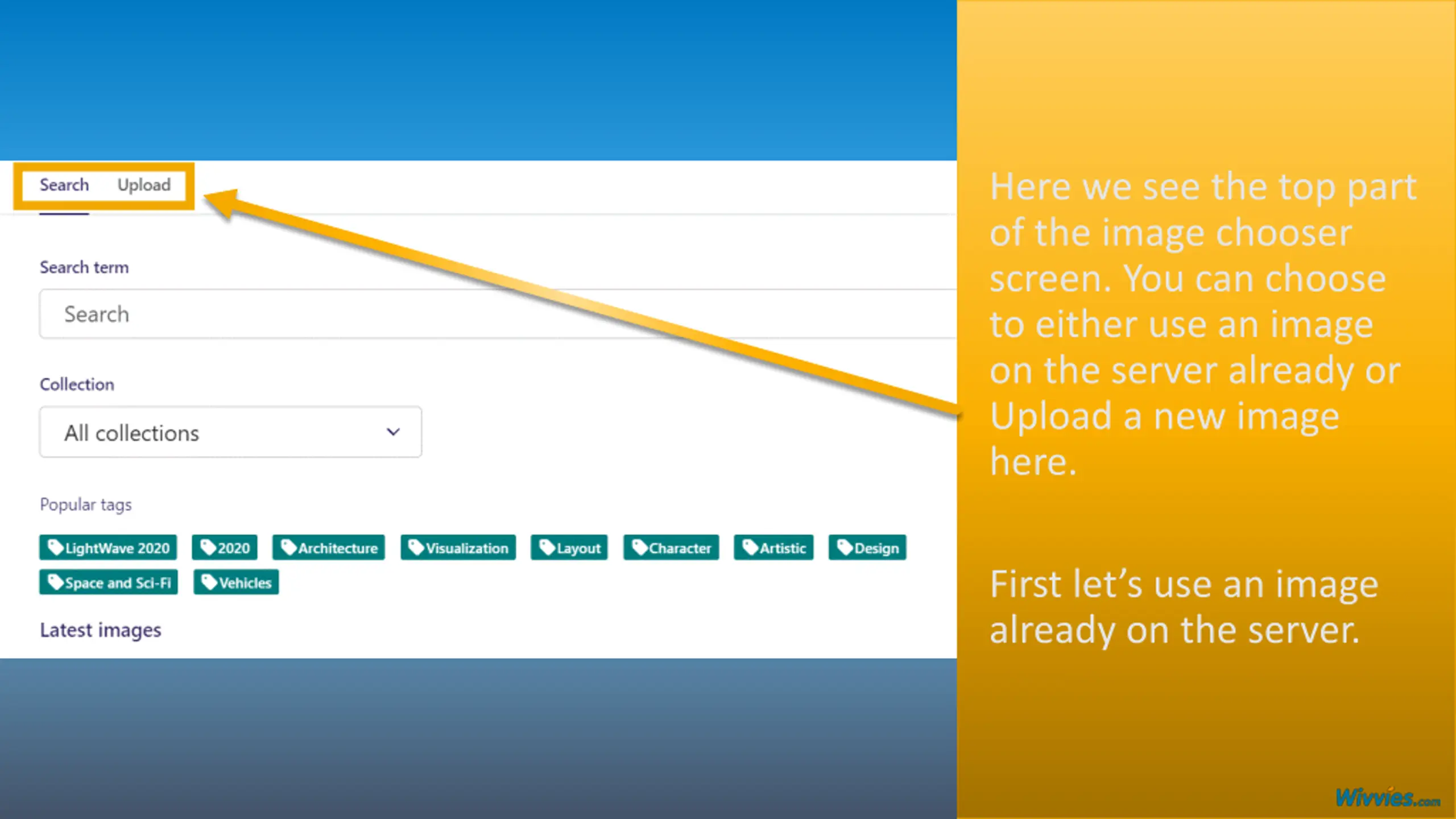 Here we see the top part of the image chooser screen. You can choose to either use an image on the server already or Upload a new image here. First let s use an image already on the server.