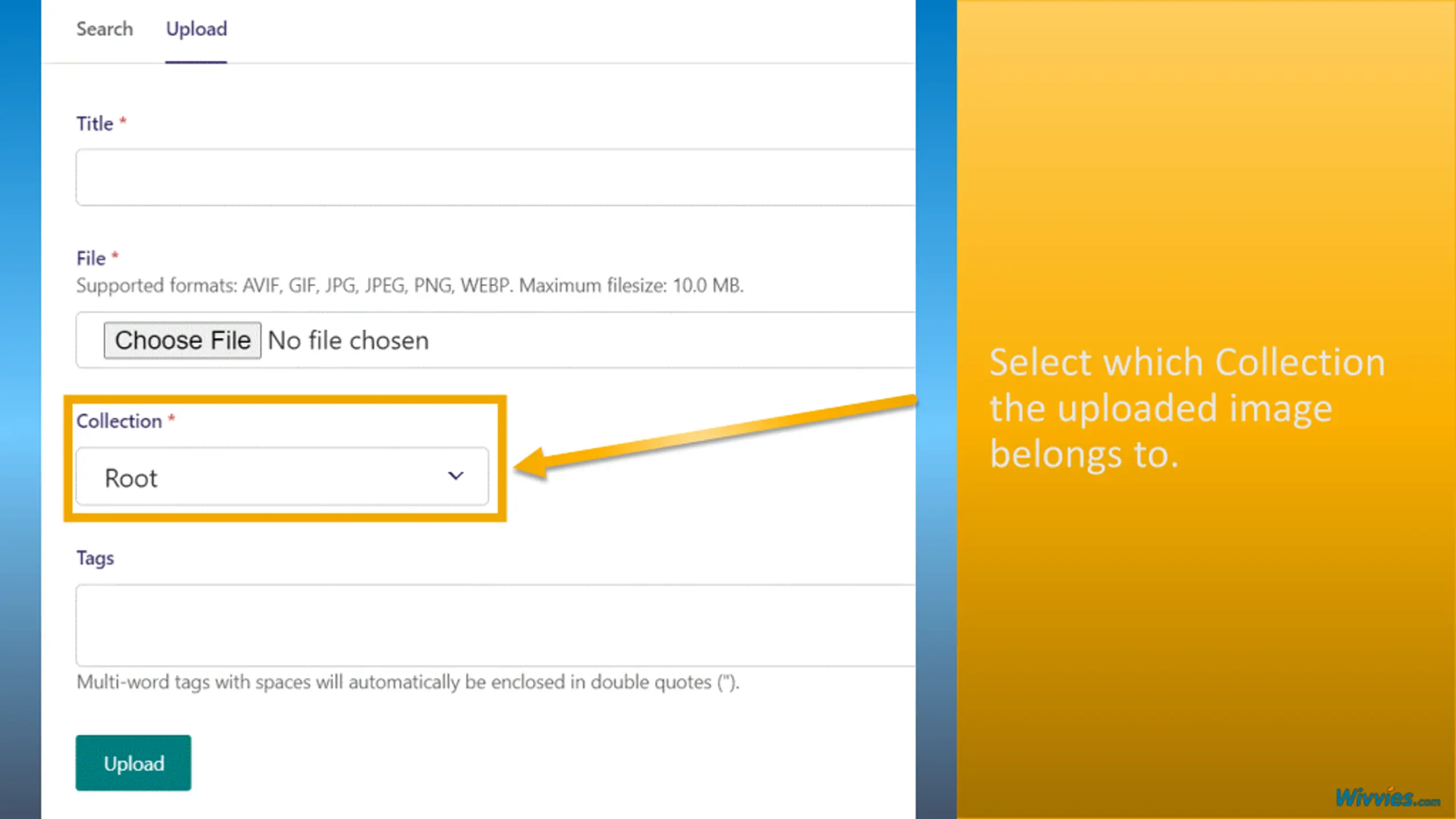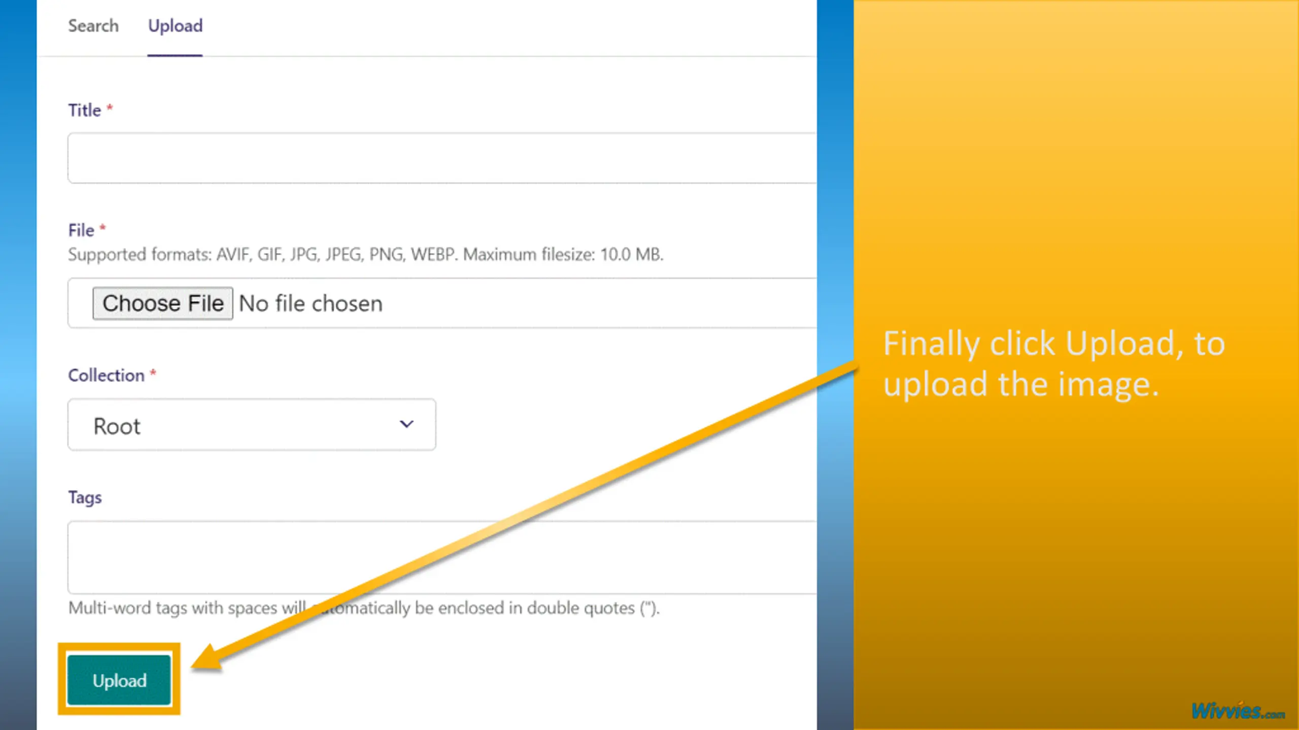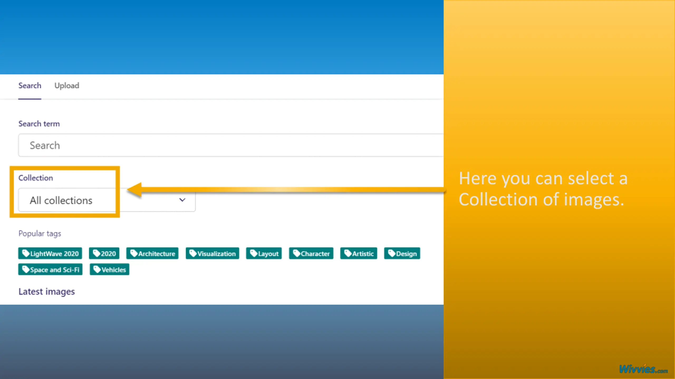 Here we see the top part of the image chooser screen. You can choose to either use an image on the server already or Upload a new image here. First let s use an image already on the server.