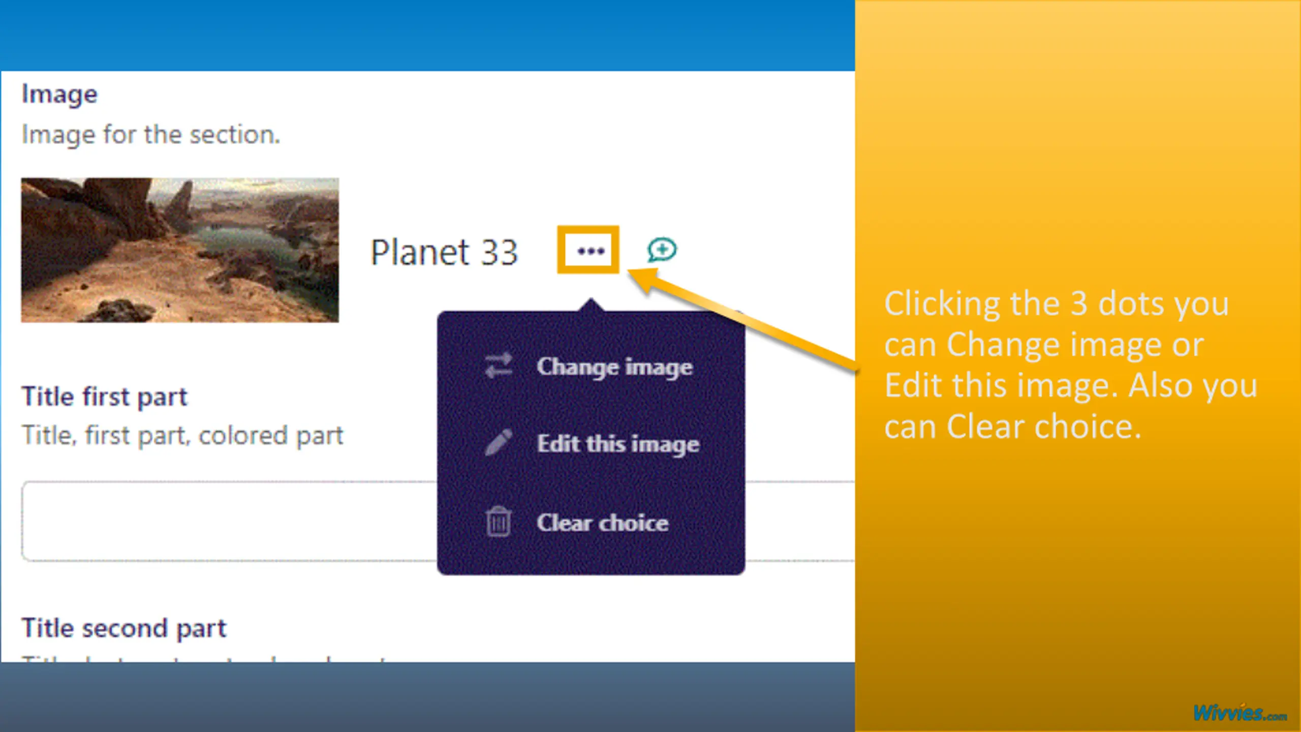 Clicking the 3 dots you can Change image or Edit this image. Also you can Clear choice.