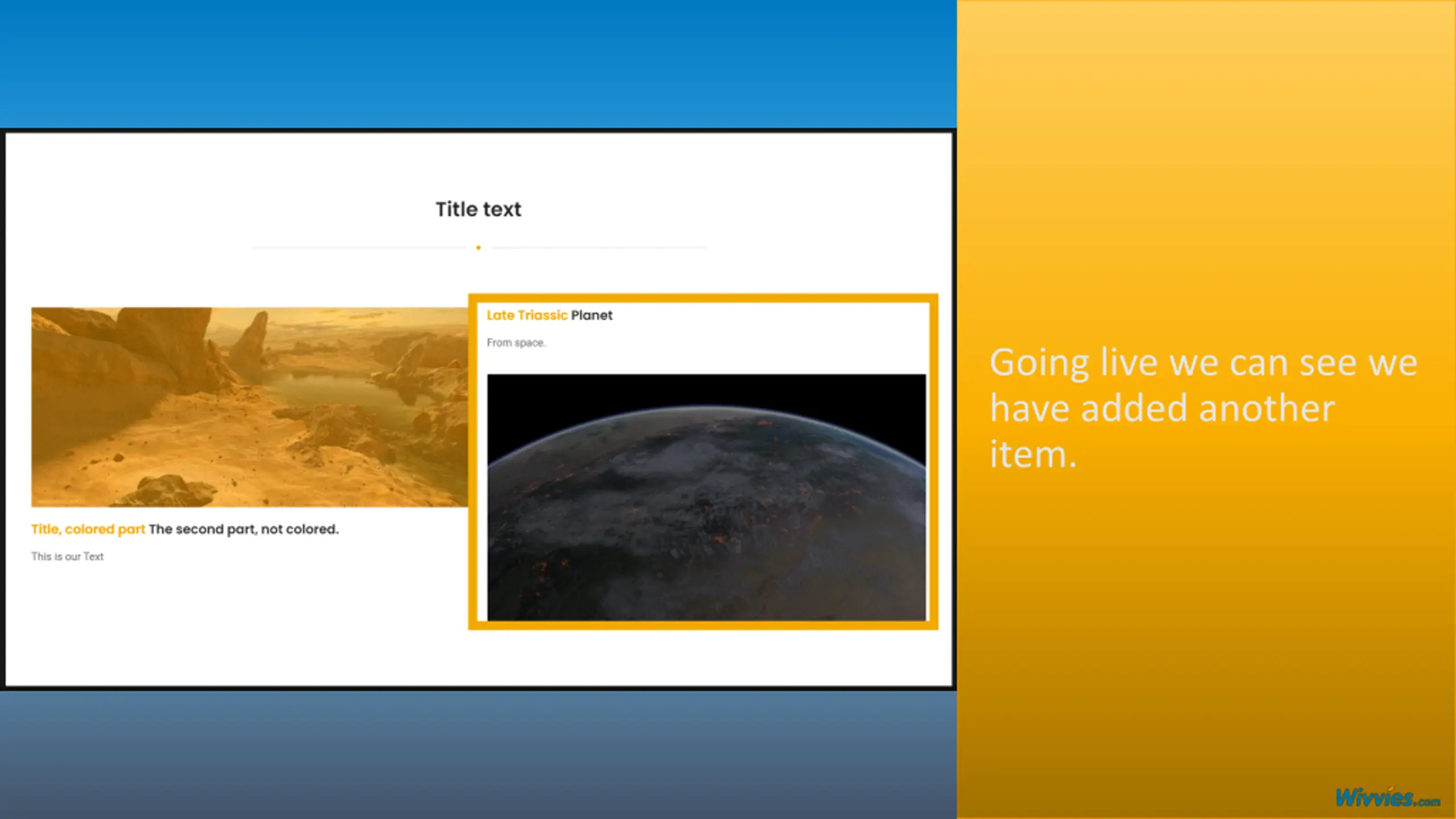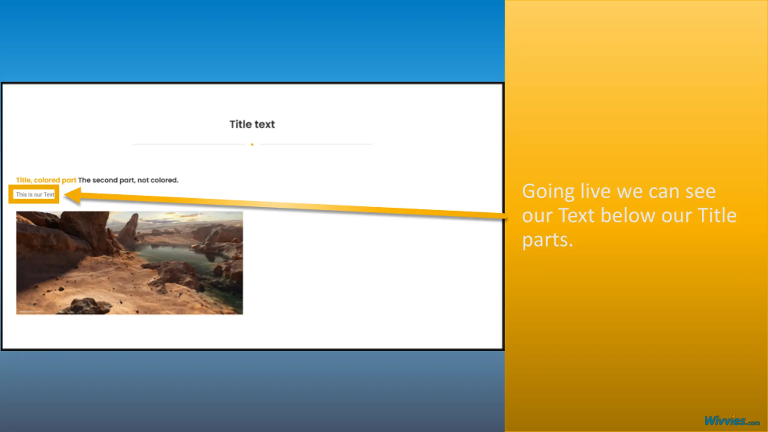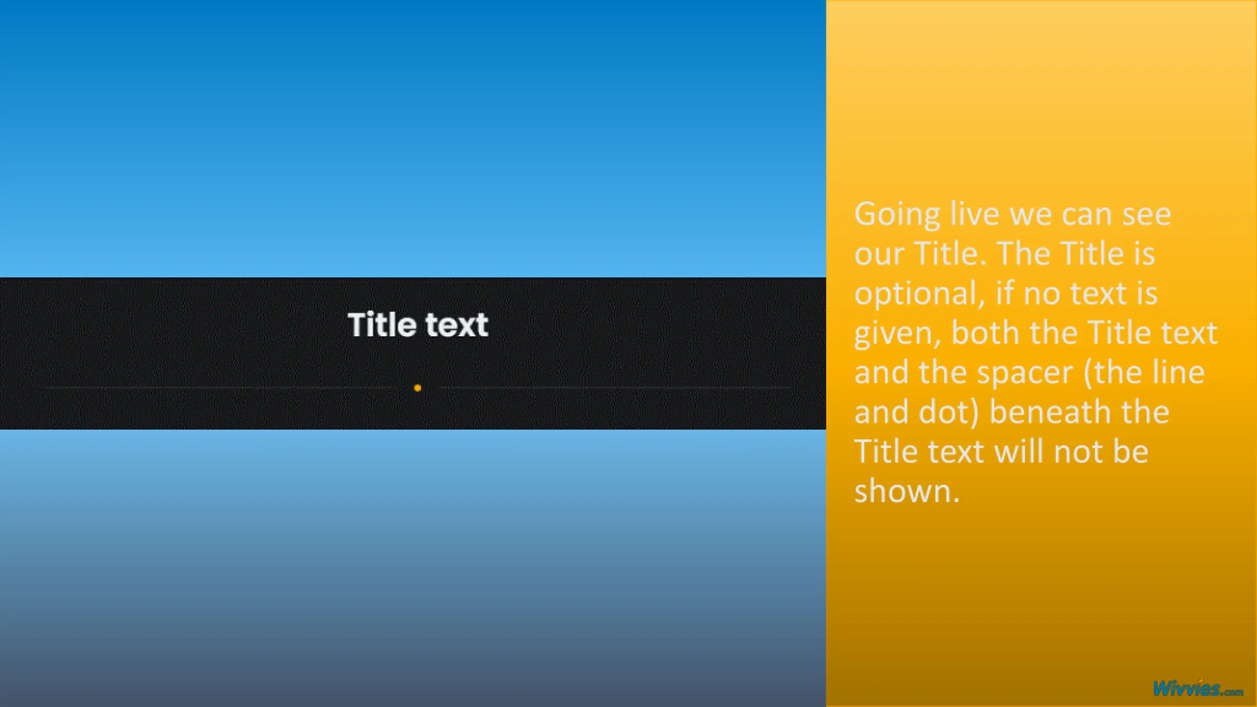 Going live we can see our Title. The Title is optional, if no text is given, both the Title text and the spacer (the line and dot) beneath the Title text will not be shown.