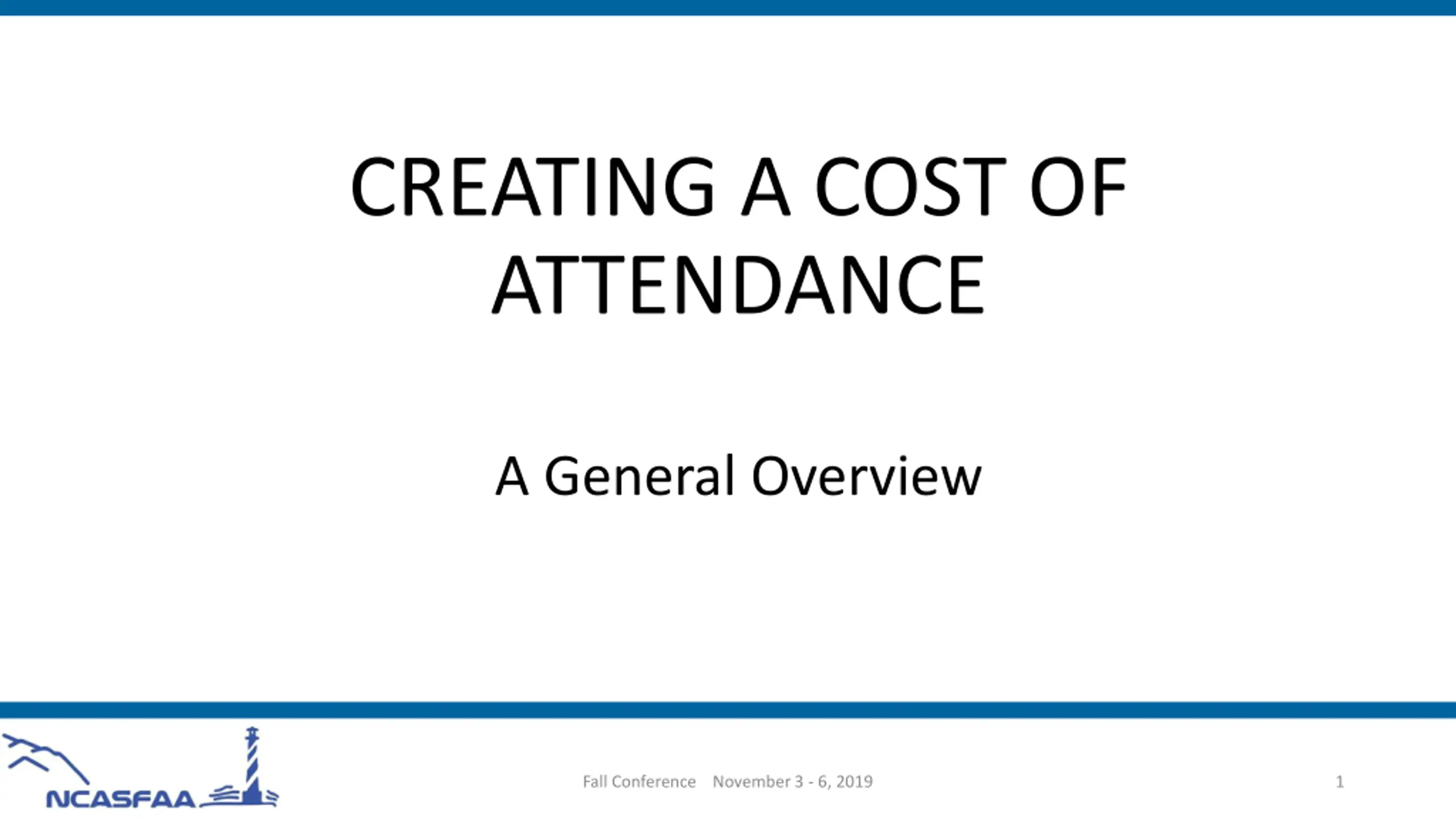 CREATING A COST OF ATTENDANCE A General Overview Fall Conference November 3 - 6, 2019 1