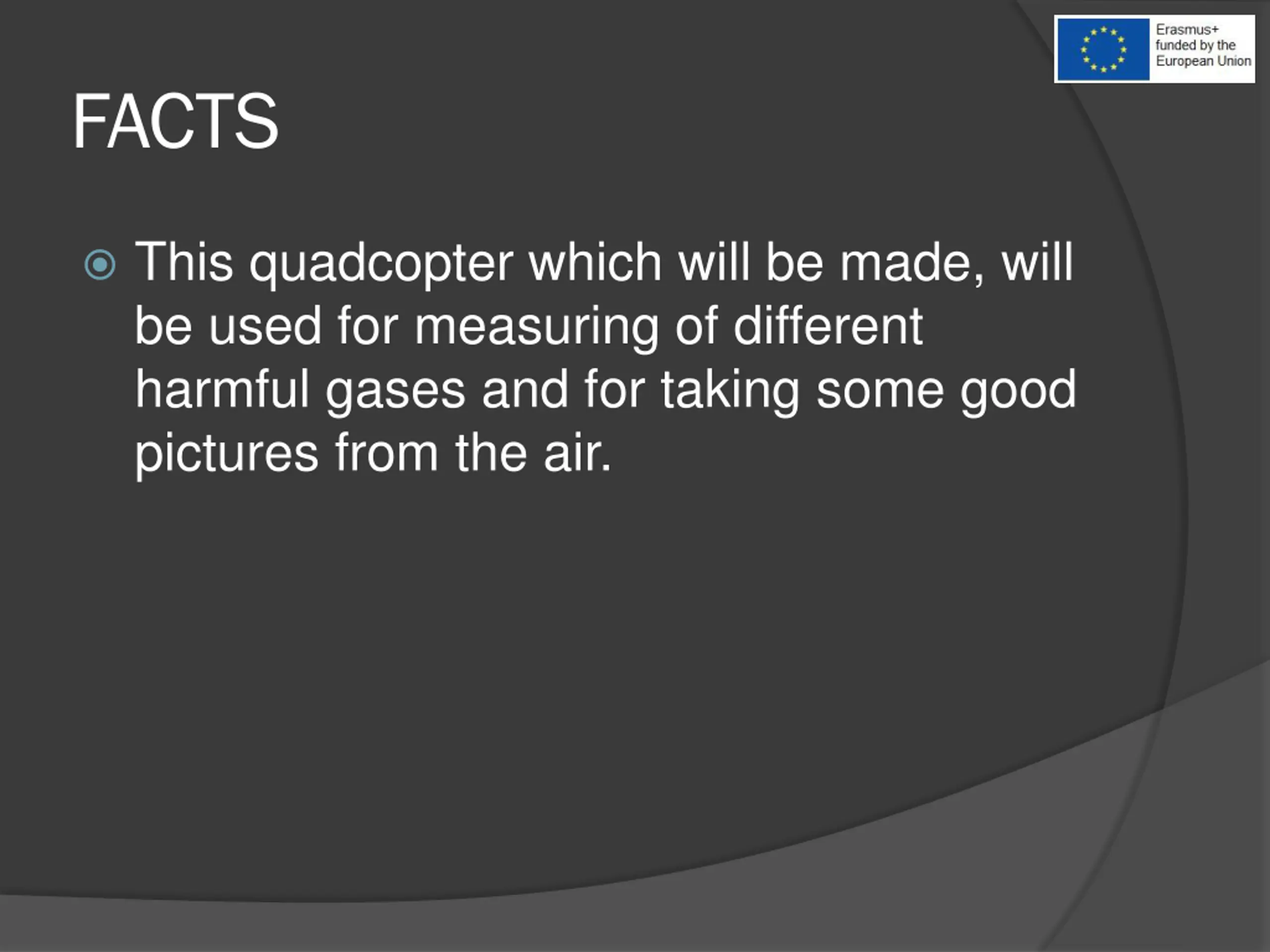 FACTS This quadcopter which will be made, will be used for measuring of different harmful gases and for taking some good pictures from the air.