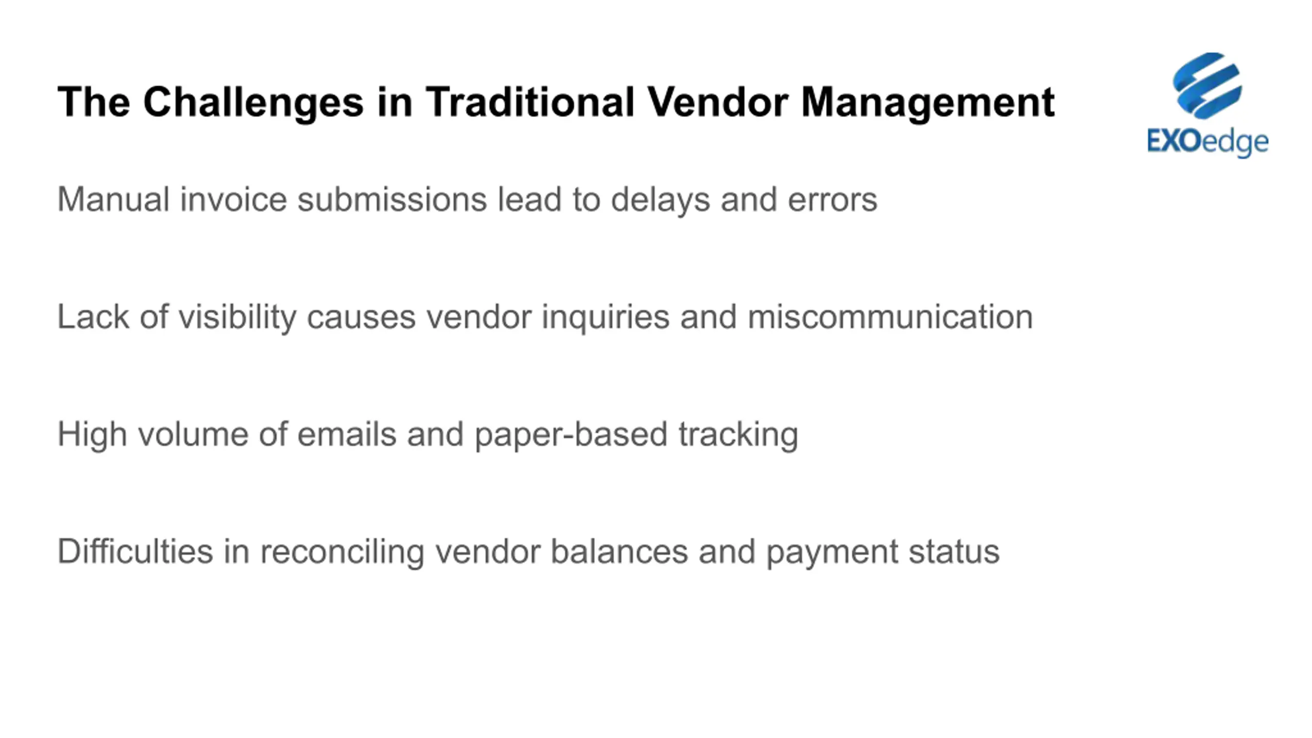 Creating a Vendor Portal for Faster AP Processing Presented by: EXO Edge