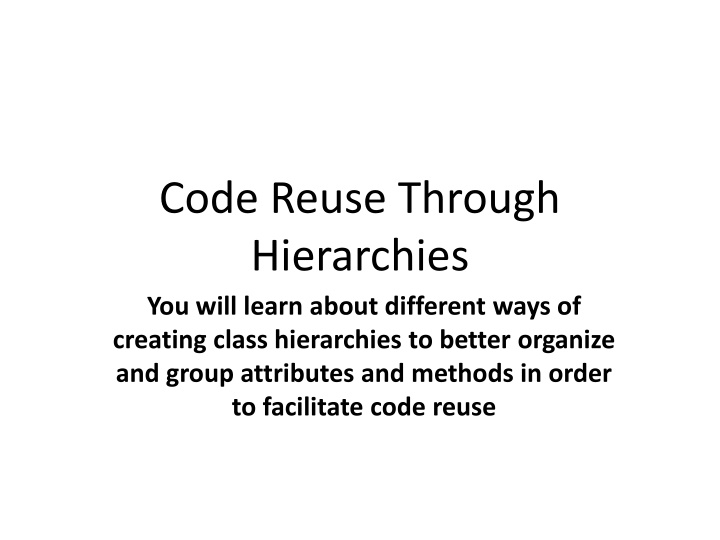 Code Reuse Through Hierarchies You will learn about different ways of creating class hierarchies to better organize and group attributes and methods in order to facilitate code reuse