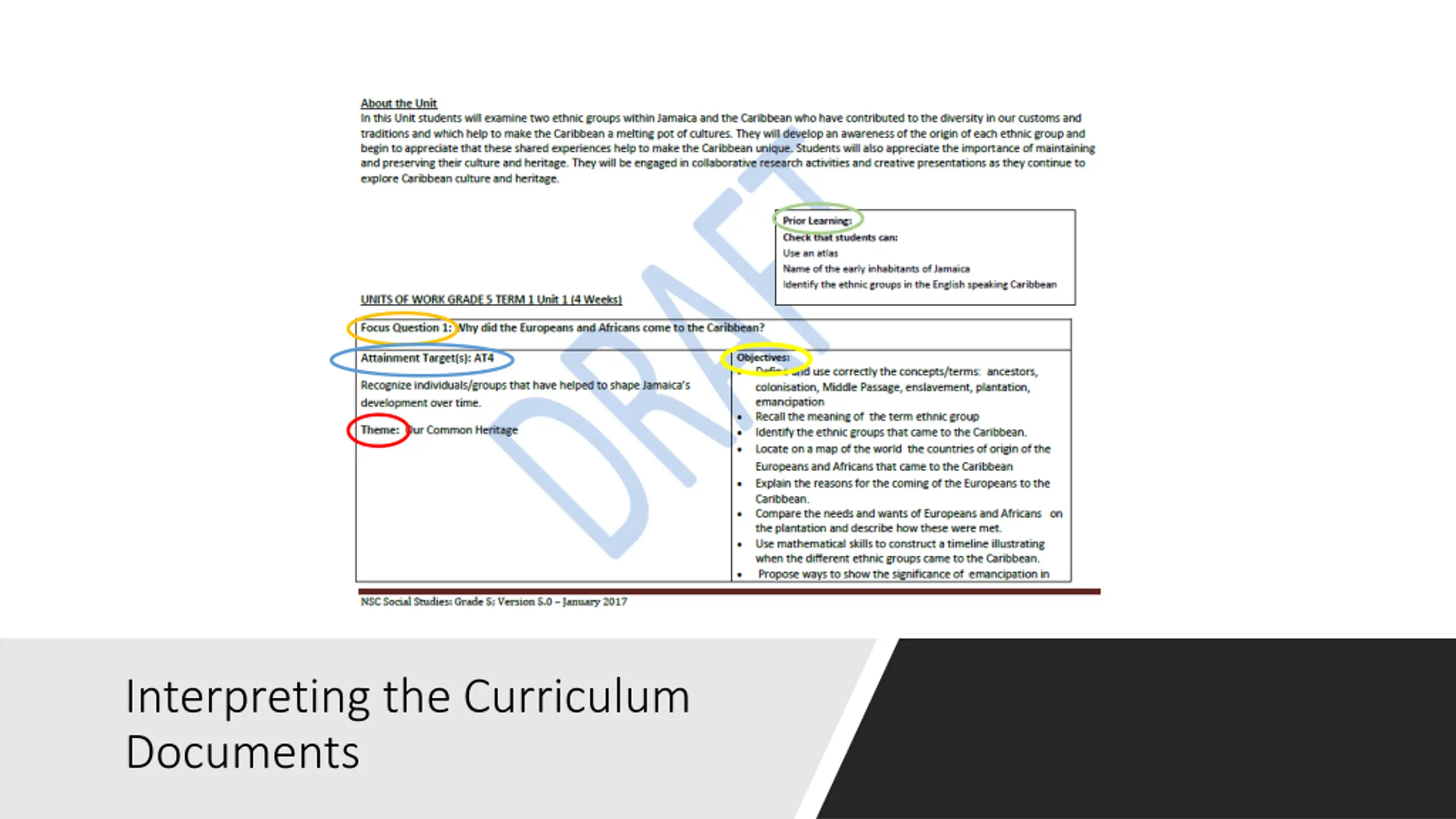 Objectives Participants will: Understand the curriculum framework and the philosophies that drive it Learn the principles and methodologies being promoted by the NSC Learn how to interpret the curriculum document for each grade level Determine evidence of 21stcentury skill development Determine the extent to which assessment tasks facilitate the development and measurement of subject content and 21stcentury skills Develop excerpts of textbooks and workbooks that are aligned to the NSC