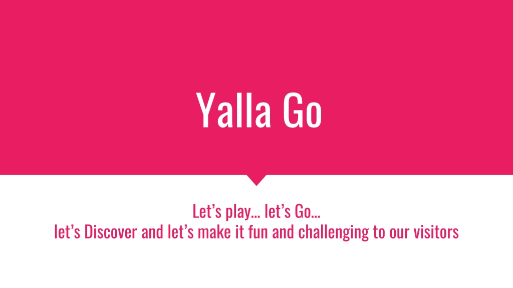 Yalla Go Let s play let s Go let s Discover and let s make it fun and challenging to our visitors